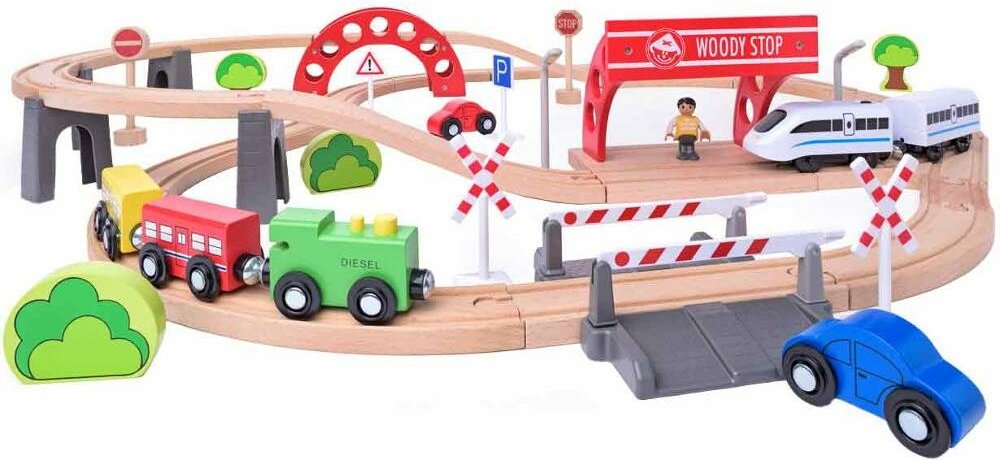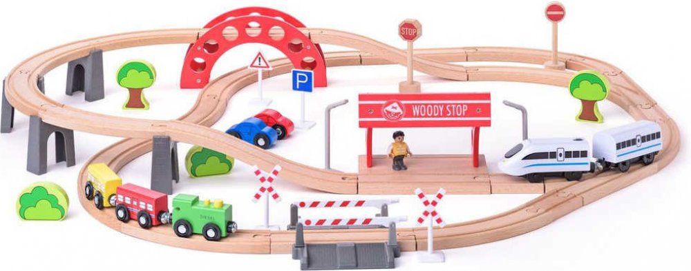 Woody Vláčkodráha s elektrickou mašinkou a viaduktem, 60 dílů