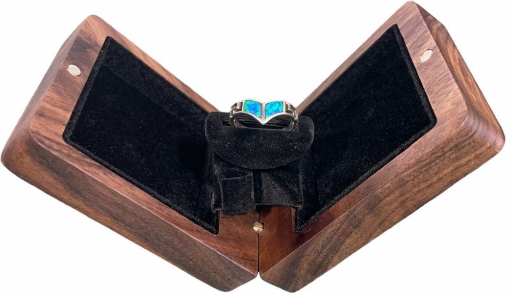 Zásnubní/svatební krabička na prstýnek. Vyrobena z ořechového dřeva.