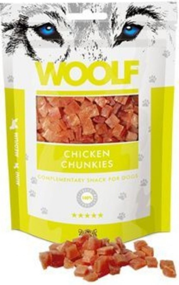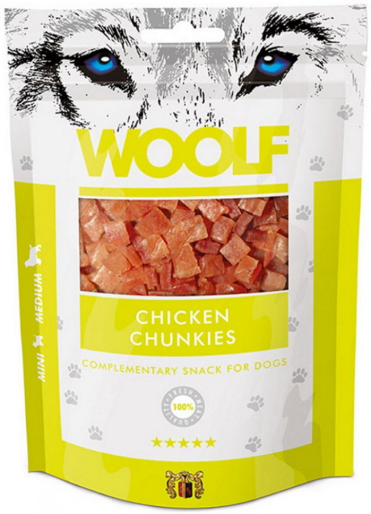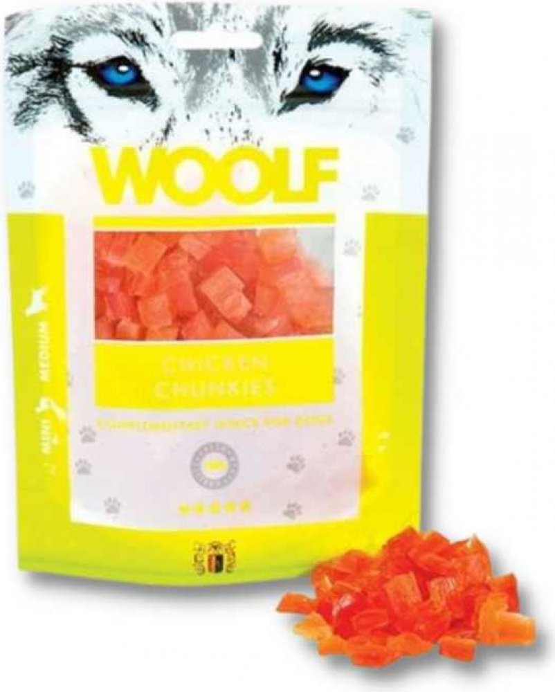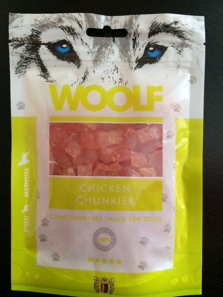 Pochoutky pro psy WOOLF jsou speciálně navrženy pro psy všech plemen. Při výrobě jsou ze 100% použity kvalitní bílkoviny té nejvyšší kvality pro co nejlepší příjem potravy. Veškeré pochoutky WOOLF jsou ihned po vyrobení zabaleny bez chemických přísad, konzervačních látek, nebo barviv. K zajištění ochrany je do sáčku umístěn absorbér kyslíku. Balíček je opatřen zipem.
