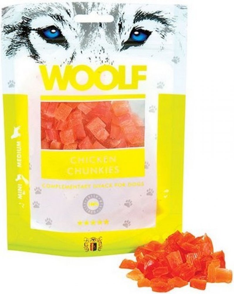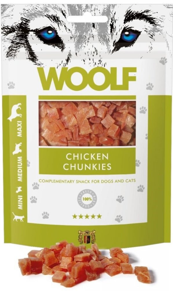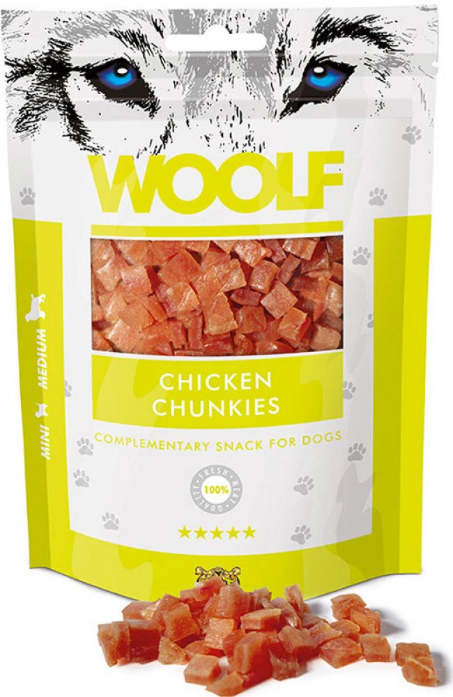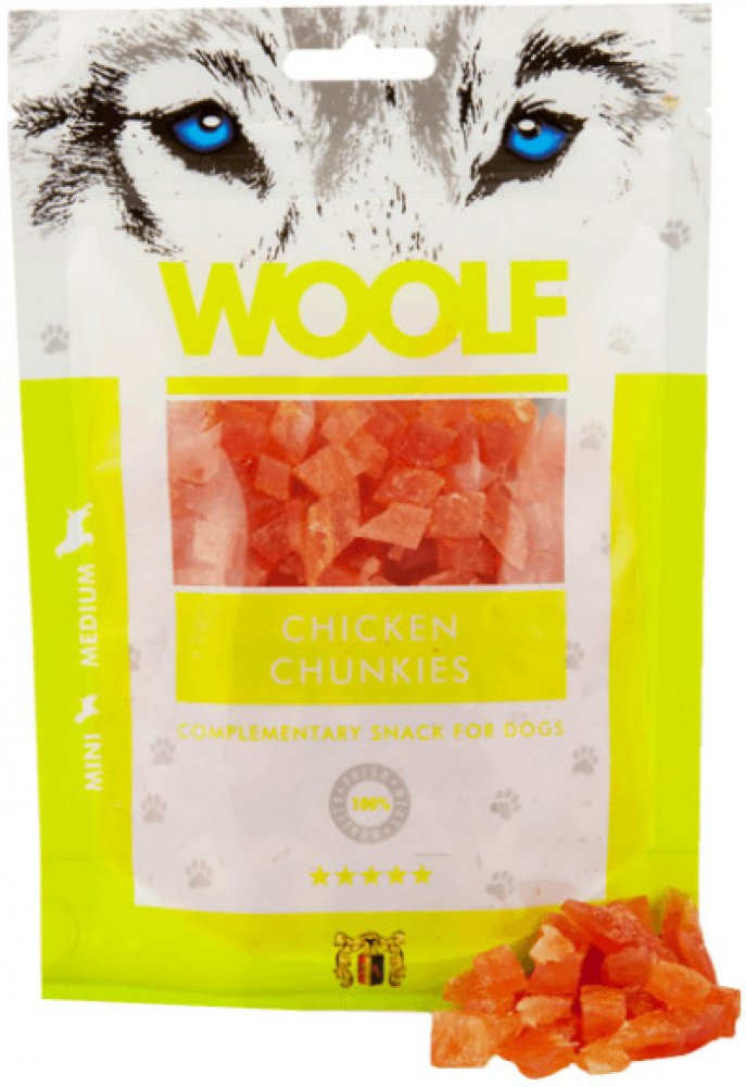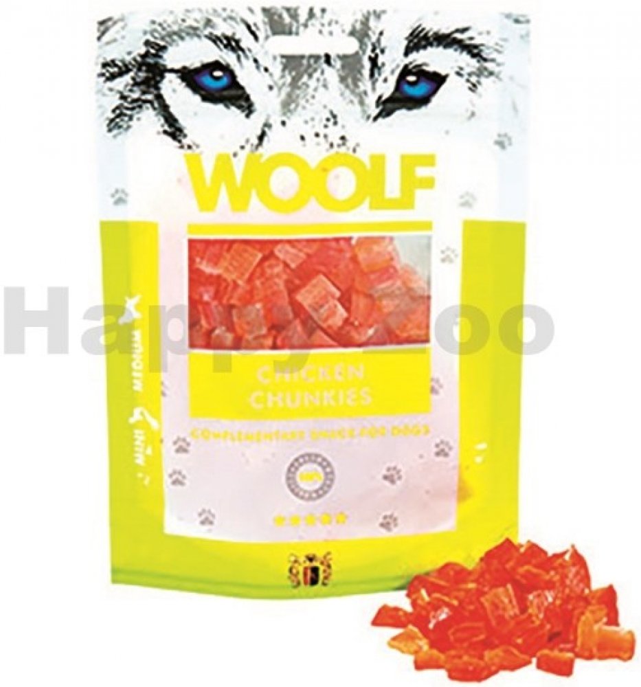 Pochoutky pro psy WOOLF jsou speciálně navrženy pro psy všech plemen. Při výrobě jsou ze 100% použity kvalitní bílkoviny té nejvyšší kvality pro co nejlepší příjem potravy. Veškeré pochoutky WOOLF jsou ihned po vyrobení zabaleny bez chemických přísad, konzervačních látek, nebo barviv. K zajištění ochrany je do sáčku umístěn absorbér kyslíku. Balíček je opatřen zipem.