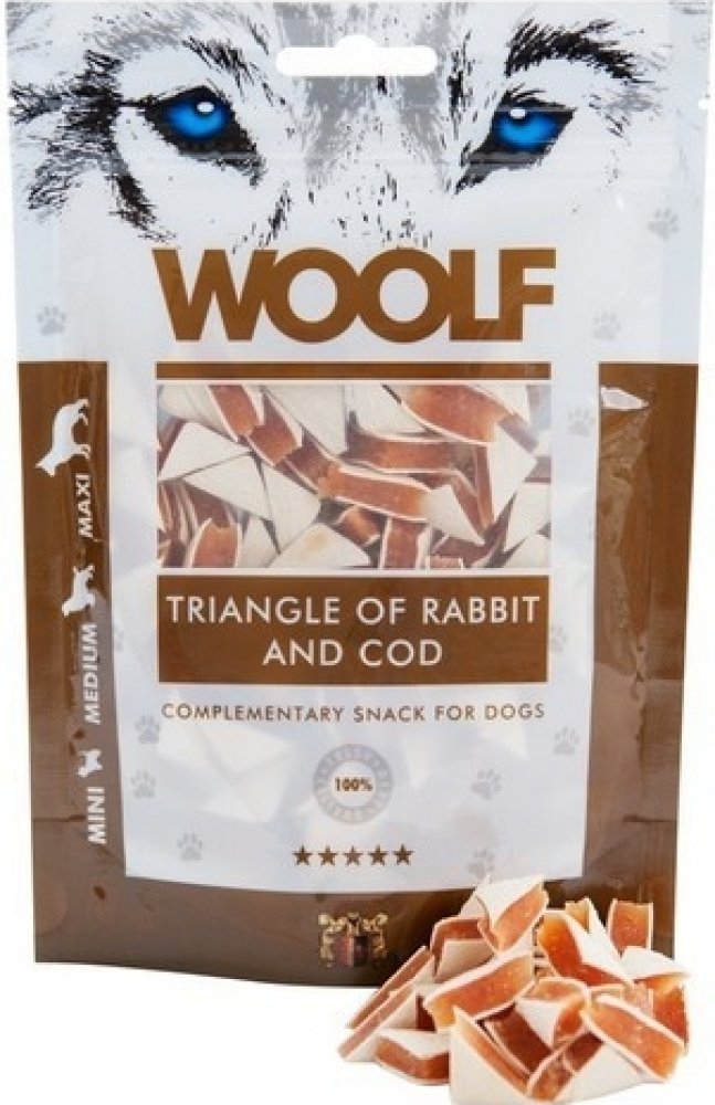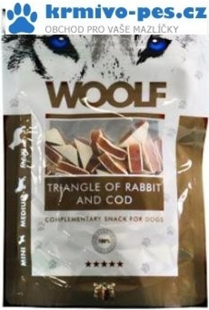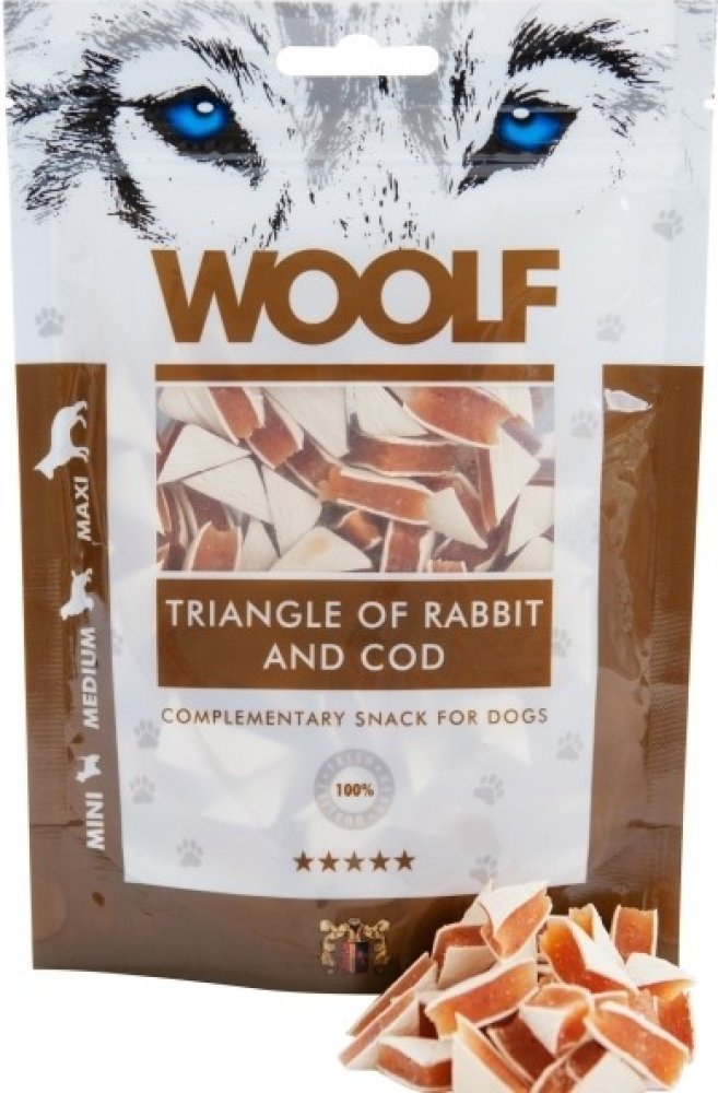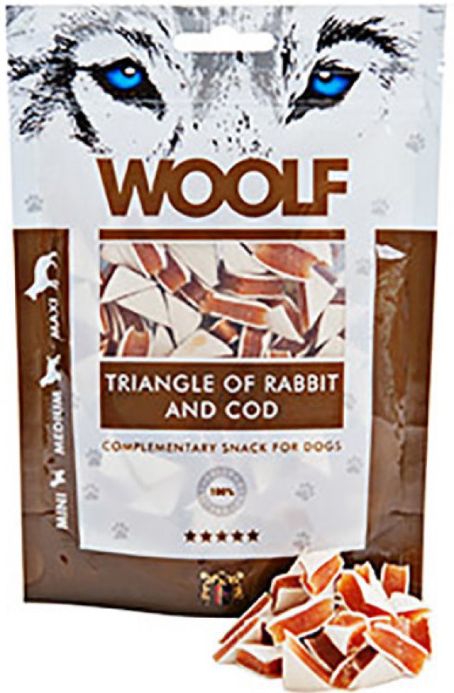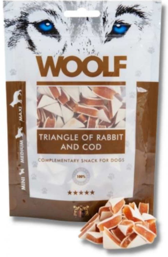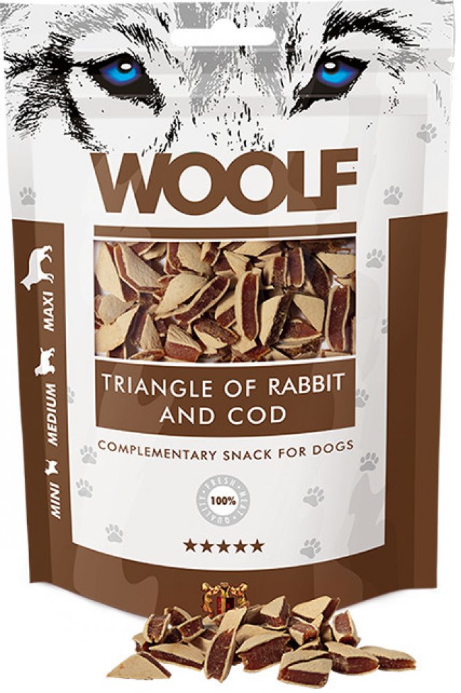 Vlněný pamlsek pro psy Trojúhelník králíka a tresky 100 g Pamlsek pro dospělé psy od 4 měsíců věku