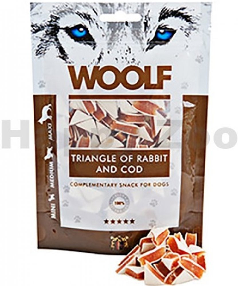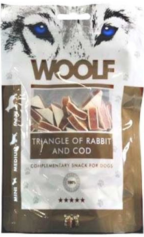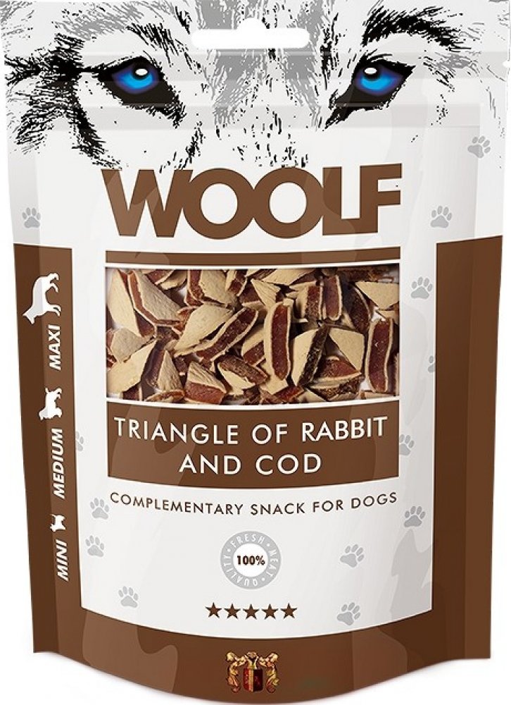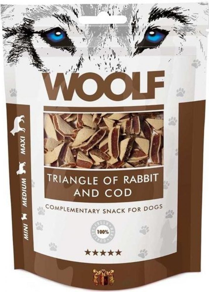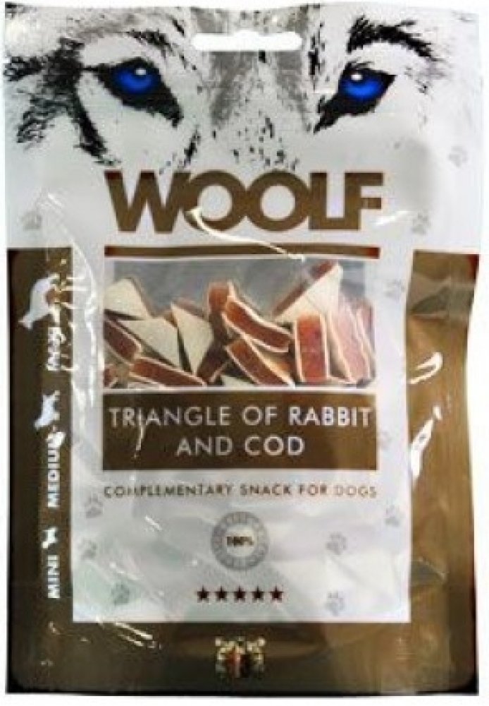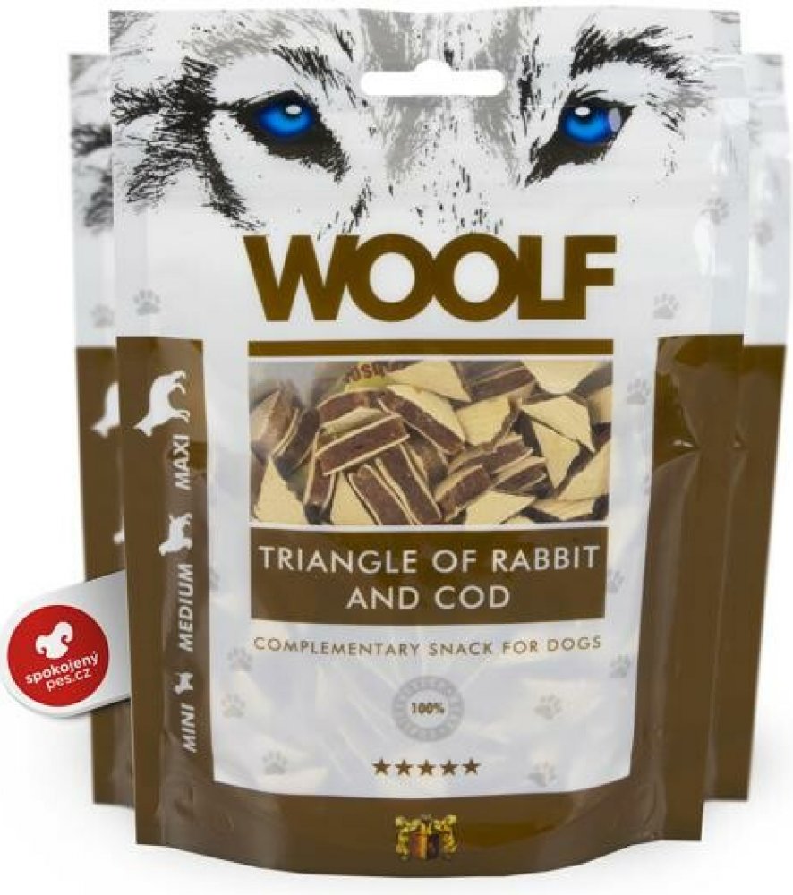 Vlněný pamlsek pro psy Trojúhelník králíka a tresky 100 g Pamlsek pro dospělé psy od 4 měsíců věku