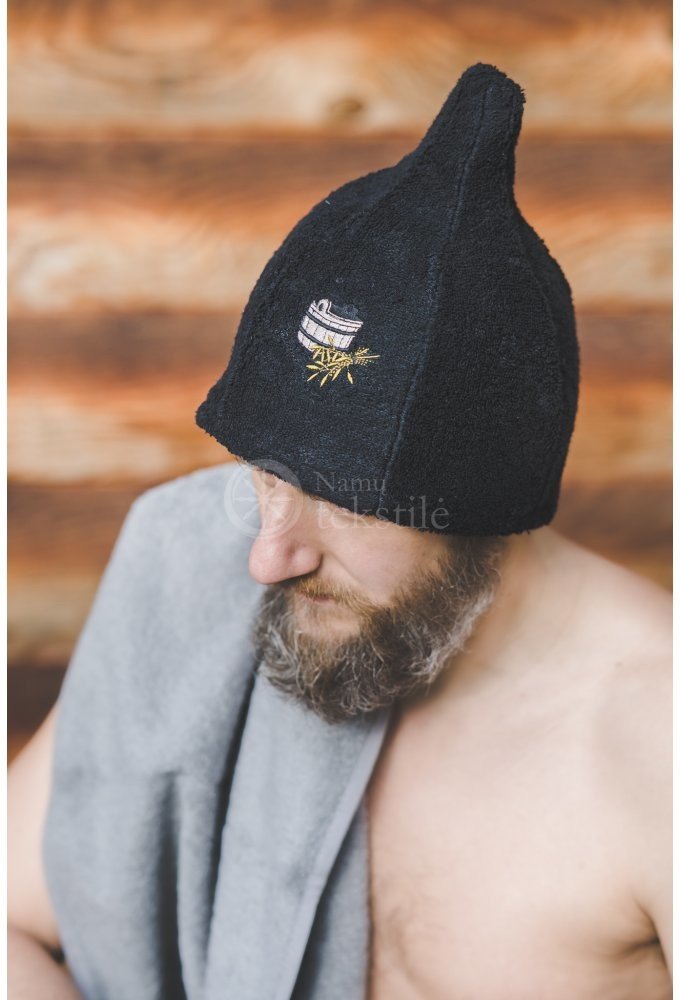 Saunová čepice je vyrobena ze 100% froté bavlny, která je velice jemná a příjemná na omak. Saunové čepice jsou určeny pro používání v sauně jako ochrana hlavy proti přehřátí. Což je jejich hlavní funkce. Díky použitému materiálu je čepice pevnější, odolnější a trvanlivější. Saunová čepice má černou barvu, na přední pohledové straně je vyšitý symbol vědra.