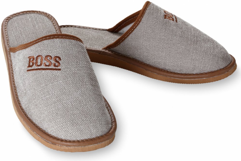 Svrchní část pantoflí BOSS ve světlém provedení je vyrobena z přírodního lnu. Pantofle mají velice precizně zpracovanou textilní úpravu. Pantofle jsou v oblasti nártu opatřeny výrazným textem "BOSS". Celý dekor pantoflí BOSS je laděn do přírodních barev v barevné kombinaci hnědé barvy lemování se šedou barvou povrchu pantoflí. Pantofle jsou určeny k celoročnímu používání. Nosit je doporučujeme zej...