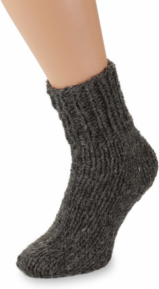 Vlněné ponožky jsou ručně pletené ze 100% ovčí vlny. Díky použitému materiálu se ponožka přizpůsobí velikosti chodidla.