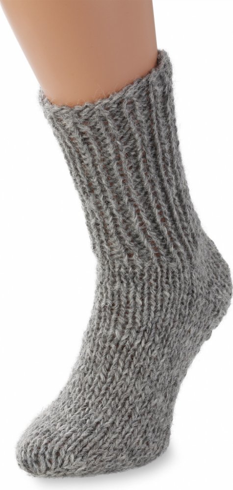 Vlněné ponožky jsou ručně pletené ze 100% ovčí vlny. Díky použitému materiálu se ponožka přizpůsobí velikosti chodidla.