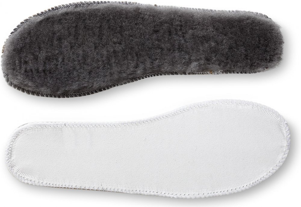 Horní strana vložek do bot je pak vyrobena ze 100% ovčí kožešiny. Ovčí kožešina velice dobře izoluje chlad. Navíc je kožešinka velice jemná a měkká na došlap. Vložky do bot jsou po obvodu prošity dvojitou nití.