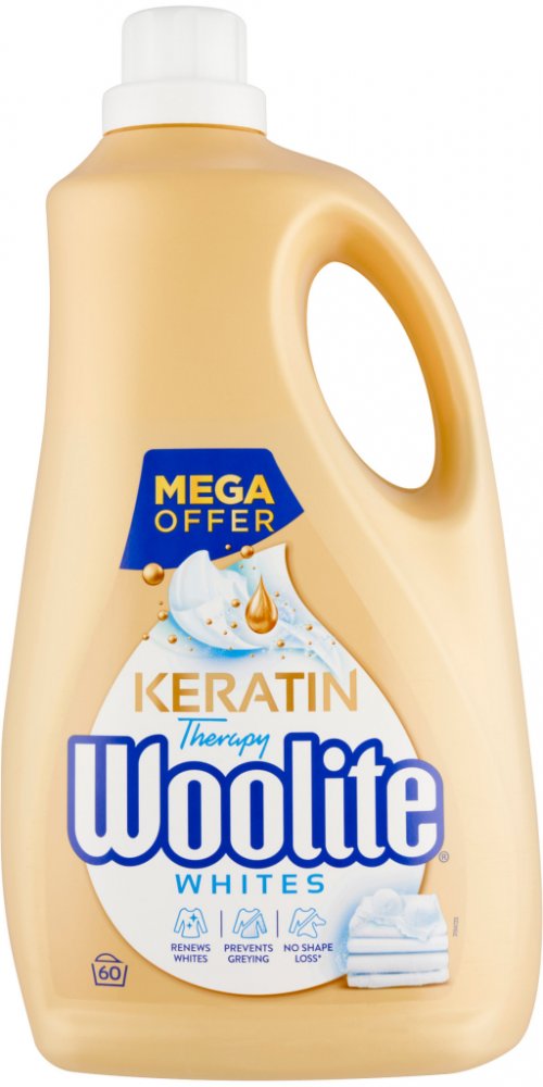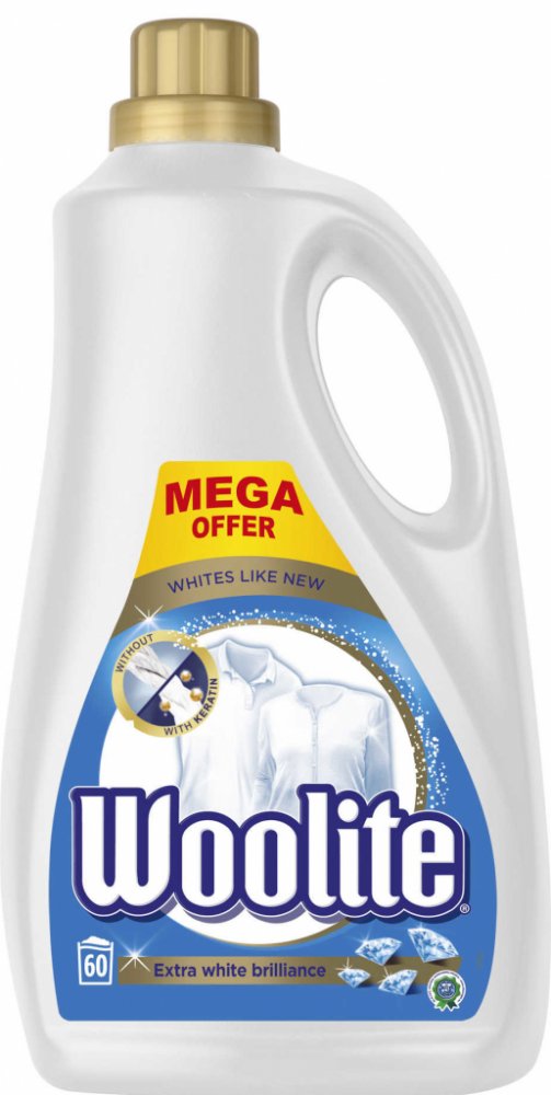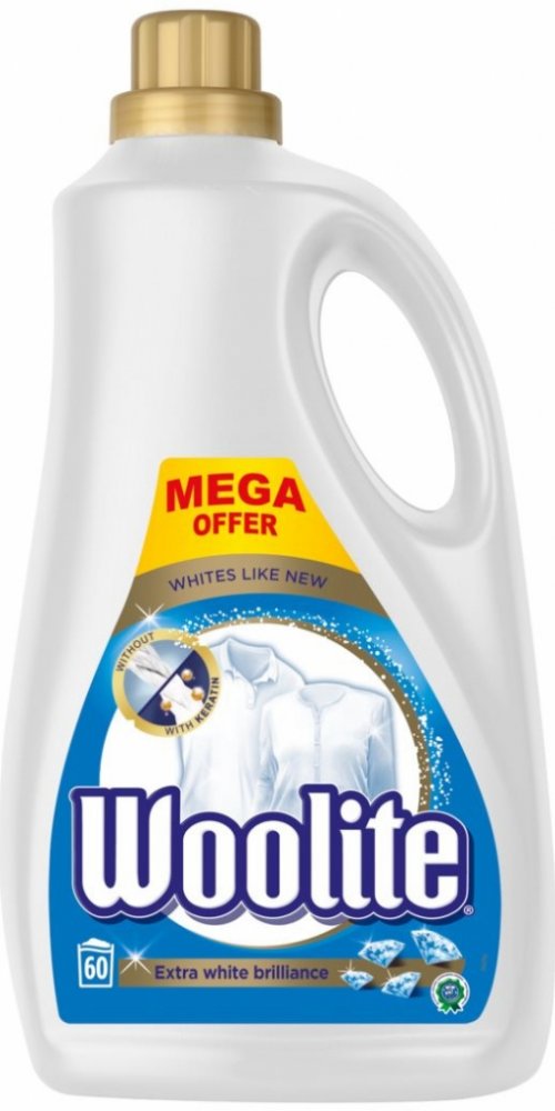 Woolite Extra White Brilliance tekutý prací prostředek na bílé prádlo. Čistí a chrání vaše oblečení proti šednutí a vyblednutí. Pomáhá udržovat oblečení déle jako nové a stále zářivé. Woolite obsahuje keratin, který obnovuje pevnost vláken. Výsledkem je čisté a zregenerované prádlo po každém vyprání.