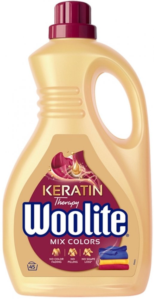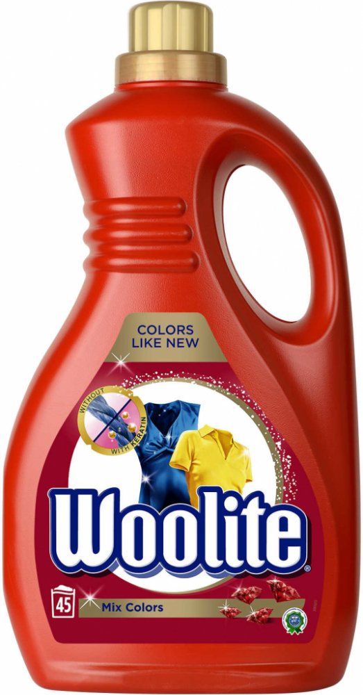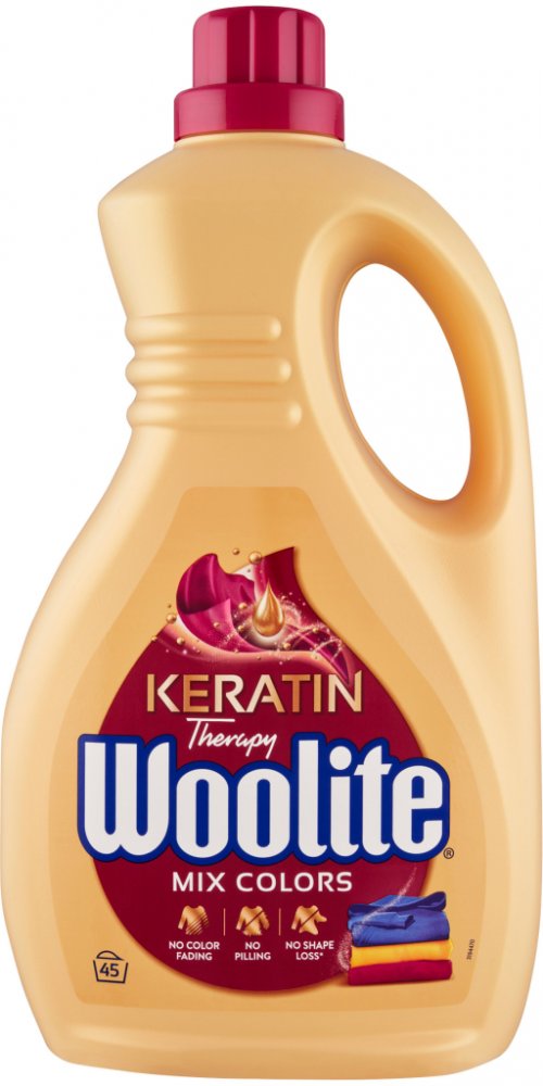 Woolite Mix Colors je speciální tekutý prací prostředek, který účinně pere a chrání barevné oblečení. Díky obsahu keratinu pomáhá chránit textiní vlákna, dodává jim jemnost a látku nemačká.
