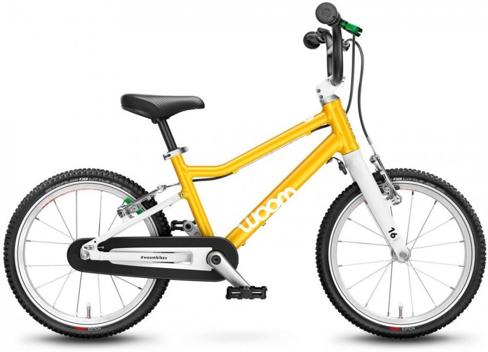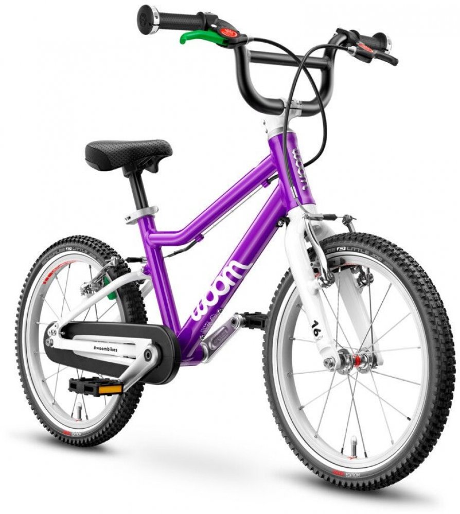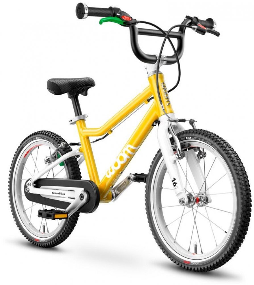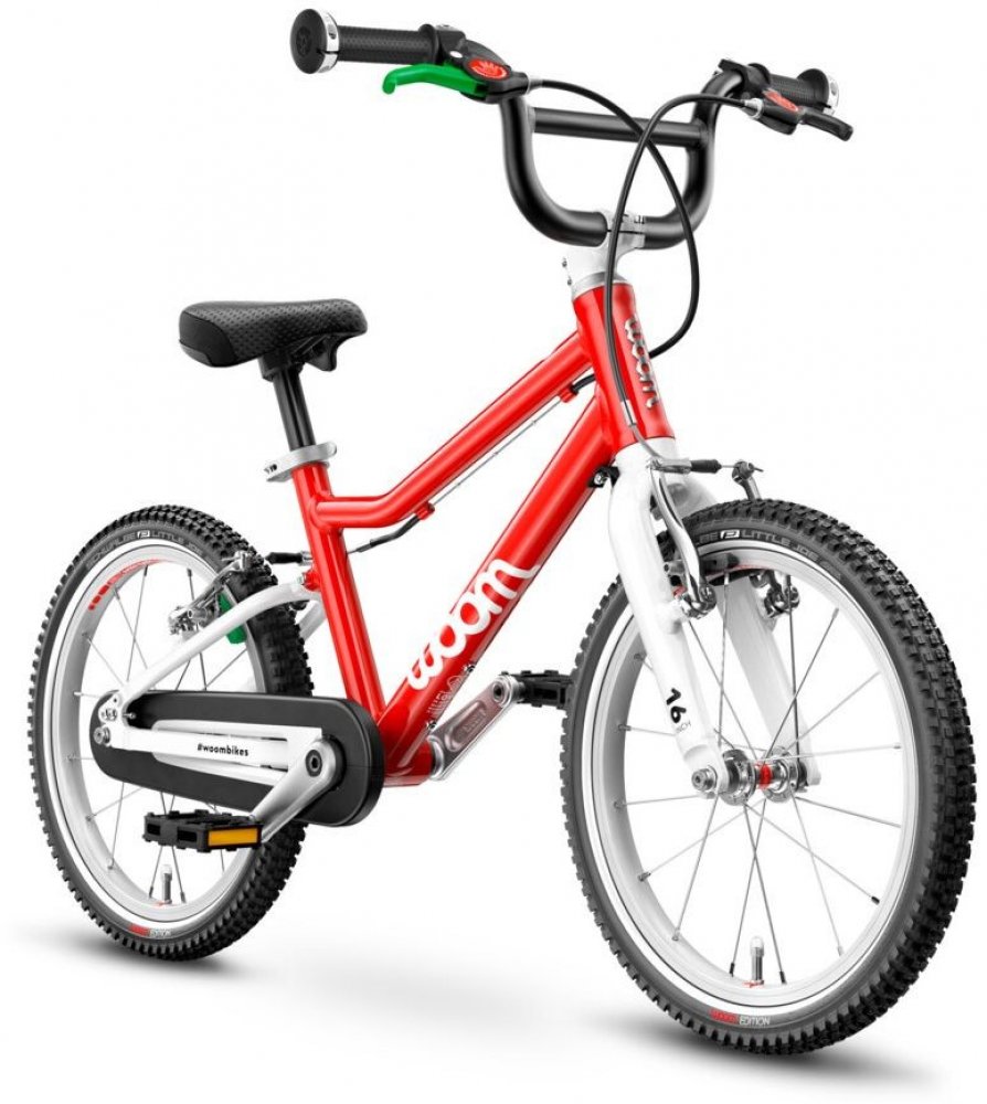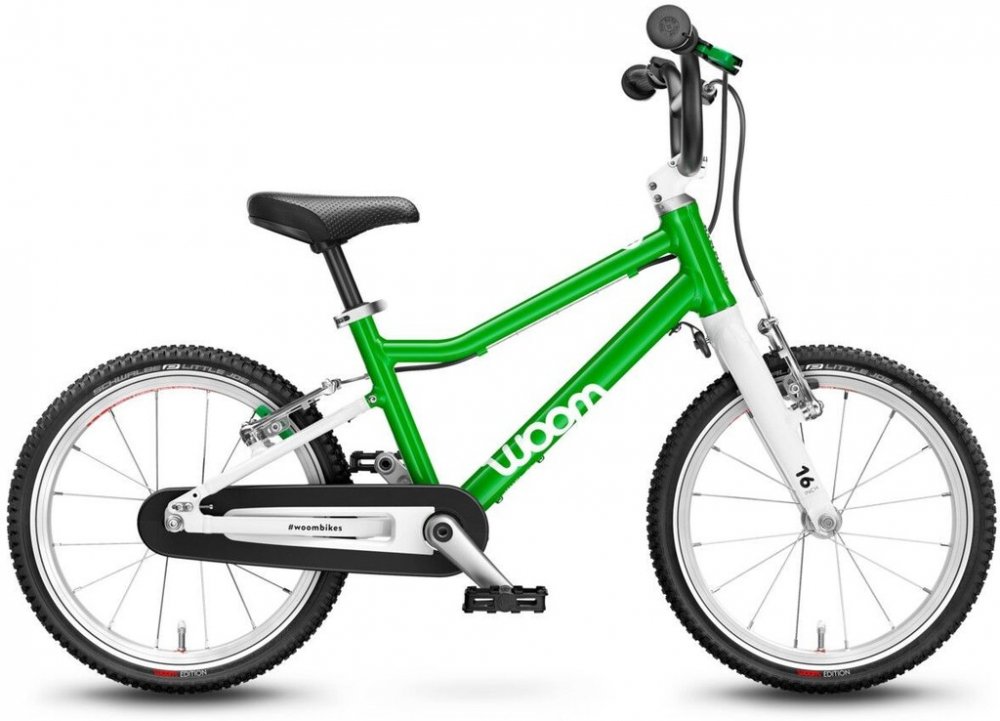 Woom 5.4 kg BMX, dirt, freestyle Hliníkové náboje s utěsněnými ložisky Hliníková unicrown vidlice, 1" řízení hliníkové pevná dětská 2021 1 x 1 16" (cca 100–115 cm) lehké (do 11 kg) snížený nástup ráfkové – lehké, jednoduché, levná údržba Hliník – odolný, nenáročný na údržbu Ergonomické brzdové páky, zadní páka zelená Single Speed, 10T Plně integrované 1" hlavové složení Kovaný hliníkový představec 40 mm/+15° plastové Hliníková BMX řidítka, šířka 500 mm Woom kids Lock-on gripy s ochranou proti kroutění 60 kg