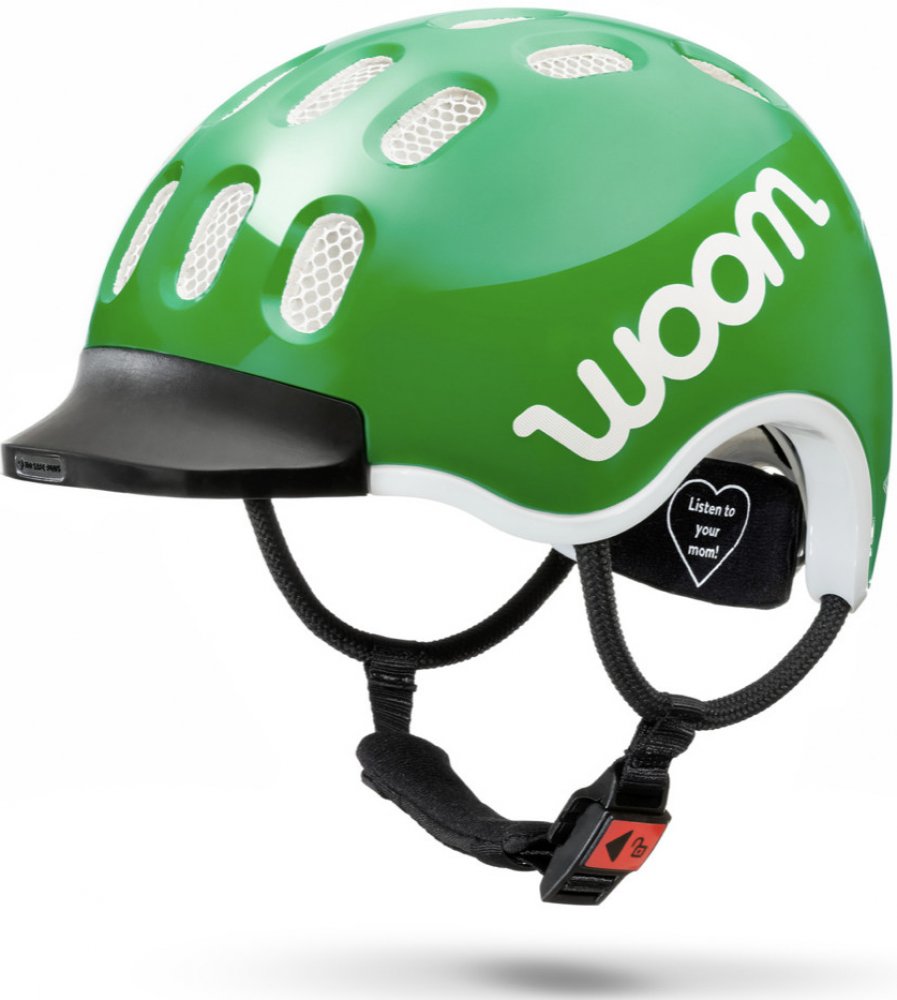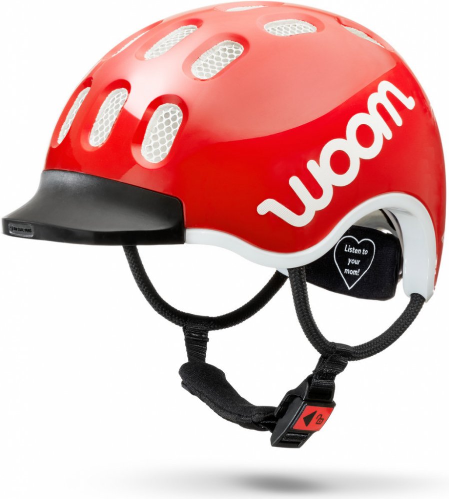 Dětská přilba na kolo WOOM s rozšířenou ochranou zadní části hlavy a magnetickou přezkou Fidlock.