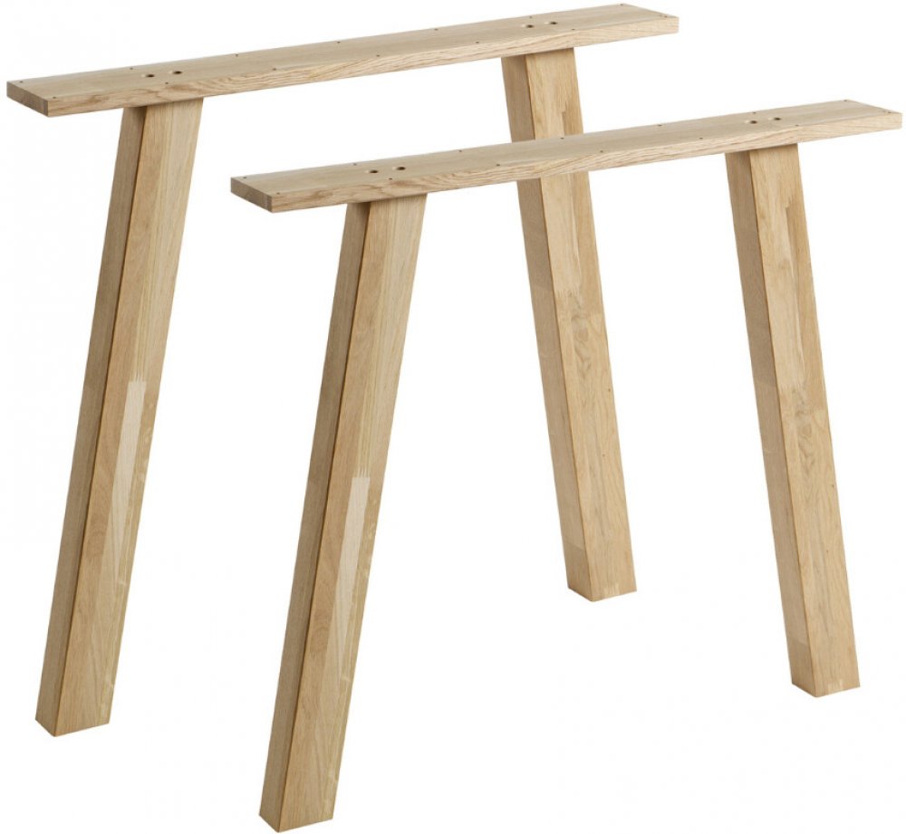 Sestavte si doma unikátní jídelní stůl! S dřevěnými stolovými podnožemi od holandské značky Hoorns si můžete vytvořit jídelní stůl přesně podle vašich představ. Stačí jen zvolit si vyhovující desku a designovou podnož, která vám sedne do vkusu. Na výběr máte z několika různých tvarů, materiálů a velikostí, díky čemuž si vybere opravdu každý. Zvolte si například tento set dubových podnoží O-Leg ve tvaru písmene "A" – představuje ideální řešení pro stolové desky o širokém rozpětí. Použité masivní dubové dřevo doporučujeme natřít čirým lakem na nábytek, výrazně tím prodloužíte životnost materiálu. Neumisťujte do přílišného tepla či vlhka, vyhnete se tak riziku změny tvaru materiálu.