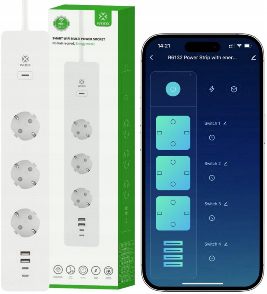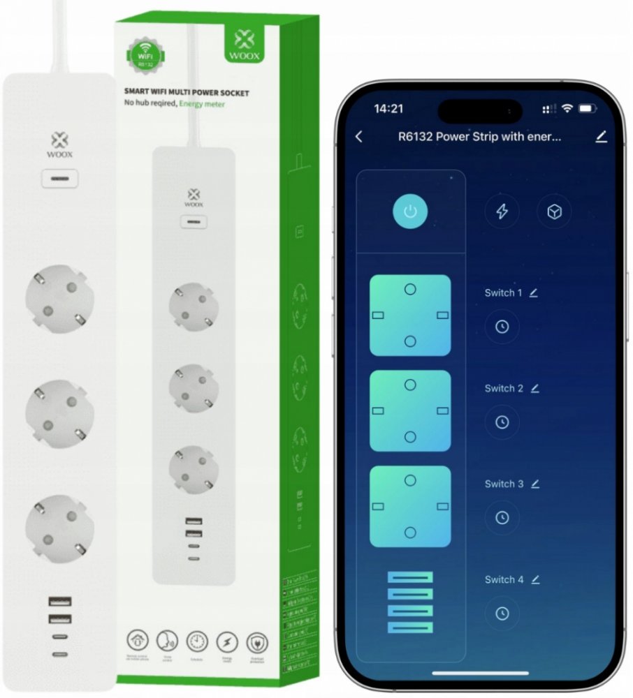 Toužíte po chytré domácnosti nebo pouze chcete z normálních spotřebičů udělat chytré? Jestli ano, tak byste měli zvážit koupi chytré zásuvky Woox. Díky tomuto chytrému zařízení je možné zapojené spotřebiče vypínat a zapínat na dálku. Má systém, který je otevřený, což značí, že zvládá běžné komunikační standardy. Nabídne vám také možnost měření spotřeby energie spotřebičů. Skrývá také USB port, ten využijete především pro nabíjení. WOOX R6132 Smart Multi Plug EU Schucko + energy monitor dokáže fungovat samostatně bez nutnosti připojení k centrální jednotce. K této chytré zásuvce se můžete bezdrátově připojit skrze WiFi 2,4 GHz. Její konstrukce obsahuje 3 ks zásuvky. Pracovat budete s aplikací, která je v angličtině a v češtině. Chytrá zásuvka Woox zvládne připojení zařízení, která nepřesáhnou zátěž 3680 W. Zásadní parametry chytré zásuvky WOOX R6132 Smart Multi Plug EU Schucko + energy monitor Díky chytré zásuvce uděláte z každého spotřebiče chytrý Můžete s ní nastavit čas provozu jednotlivých zařízení WOOX...