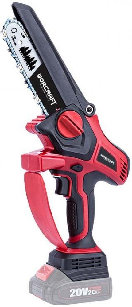 Aku řetězová pila cm Worcraft (S20Li) CHS-S20LiB, malá ruční akumulátorová pila, určená pro práce na zahradě/při údržbě pozemku apod. (prořezávání větví, kácení stromků/keřů, příprava drobného palivového dřeva atd.)Technické údaje:• Bezuhlíkový motor• Automatické mazání řetězu• Délka lišty: 15cm• Max. průměr řezaného materiálu: 14cmm• Napájení: 20V (pila je napájena pouze jednou baterií)• kapacita baterie: 2000-4000mAh• Nabíječka - doba nabíjení jedné baterie: 2Ah/60min - 4Ah/100min• otáčky řetězu: 7,5m/s• objem olejové nádrže: 40ml (součástí balení 100ml oleje)• Lišta: Délka 6"(150mm), Drážka 0,043“(1,09mm)• Řetěz: rozteč zubů 1/4“ (6,35 mm), počet zubů 36• hmotnost: 1,4kg• Kompatibilní baterie CLB-20V-2.0 S20Li obj.č. TR1130523 – není součástí balení• Kompatibilní baterie CLB-20V-4.0 S20Li obj.č. TR1130315 – není součástí balení• Kompatibilní nabíječka CLC-20V-2.4 S20Li obj.č. TR1130316 – není součástí balení