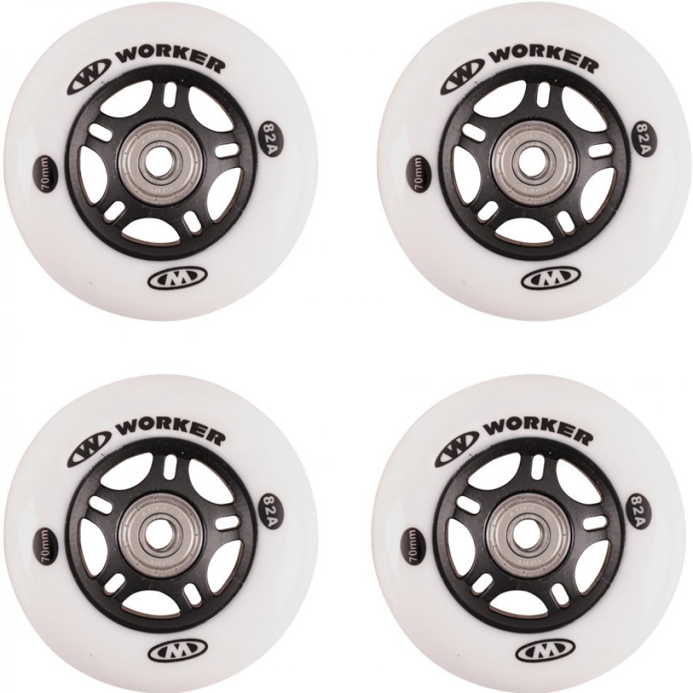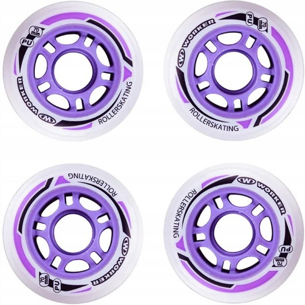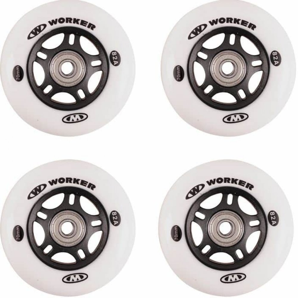 In-line kolečka WORKER 70 mm a ložiska ABEC-5 chrome - Set 4 ks jsou určena pro pokročilé in-line bruslaře. Vysoká kvalita provedení zaručí delší životnost a pohodlnou fitness jízdu na rovném a hladkém povrchu. Ložiska ABEC-5 Chrome zaručí plynulou jízdu a minimální odpor při bruslení.Technický popis: