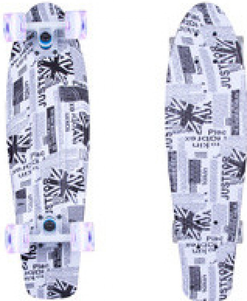 Penny board (nickelboard) s originálním motivem, protiskluzové mřížkování na svrchní části desky, kicktail cruiser vhodný do města.