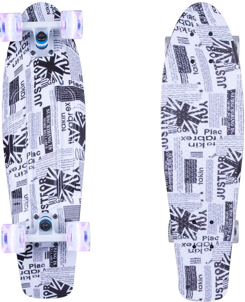 Praktické mřížkování na svrchní straně desky má za úkol zamezovat jakémukoliv sklouznutí z pennyboardu. O příjemný zážitek z jízdy se starají rychlostní ložiska ABEC 11 s vysokou precizností výroby a použité 4" trucky úžasně zatáčejí. Penny board WORKER Engly Pro 27" se jako prkno typu kicktail cruiser hodí pro urychlení cestování ve městě, po školních areálech, a i díky jeho originálnímu potisku si jej všimne každý. Tohoto většího a rychlejšího bratra klasických 22" penny boardů si určitě oblíbíte.