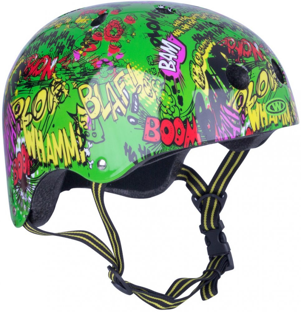 Freestyle přilba WORKER Komik je vysoce kvalitní a bezpečná přilba určená pro jízdu na kole, kolečkových bruslích, skateboardu či freeride. Ochranný skelet vyrobený z pevných a odolných materiálů chrání oblast hlavy proti případnému nárazu způsobenému pádem. Jako většina našich ochranných přileb, i tato splňuje náročné testy mezinárodní zkušebny TÜV-GS a je certifikována normou EN 1078. 11 větrací...