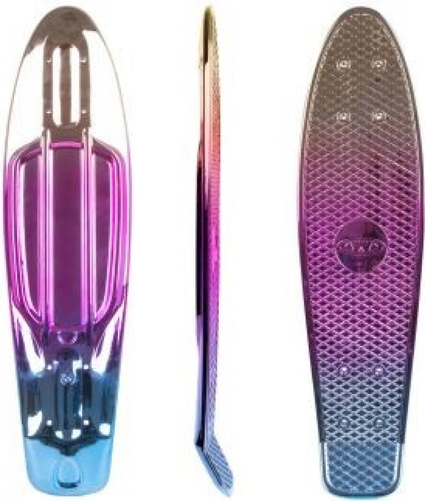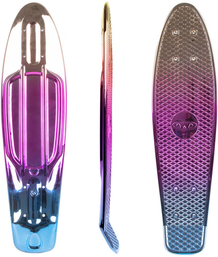 Penny board deska WORKER Mirria 22.5*6" je odolná plastová kicktail deska, která zaujme především svým lesklým pochromovaným zpracováním. Po namontování všech potřebných komponent (na dokoupení) získáte plnohodnotný penny board určený především pro urychlení cestování ve městě či po školních areálech. Mřížkování na svrchní straně má za úkol zamezovat jakémukoliv sklouznutí z desky.