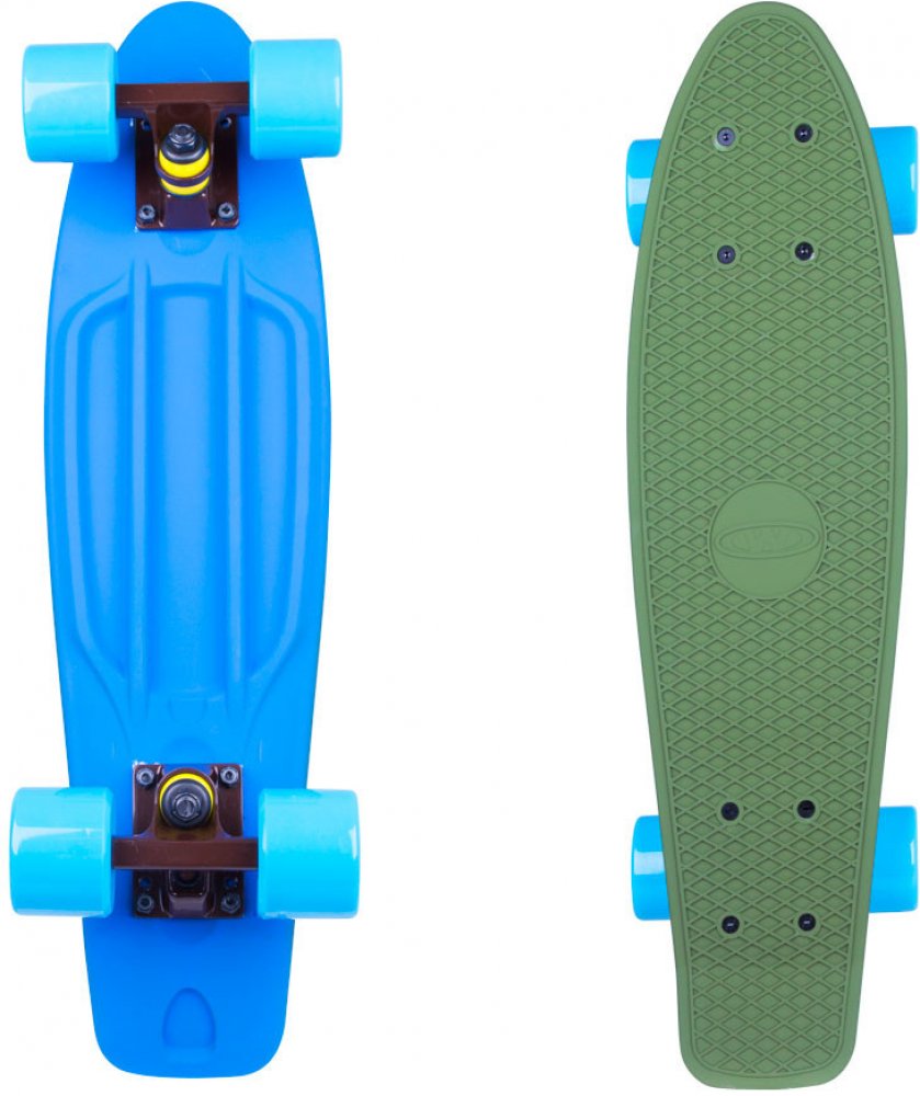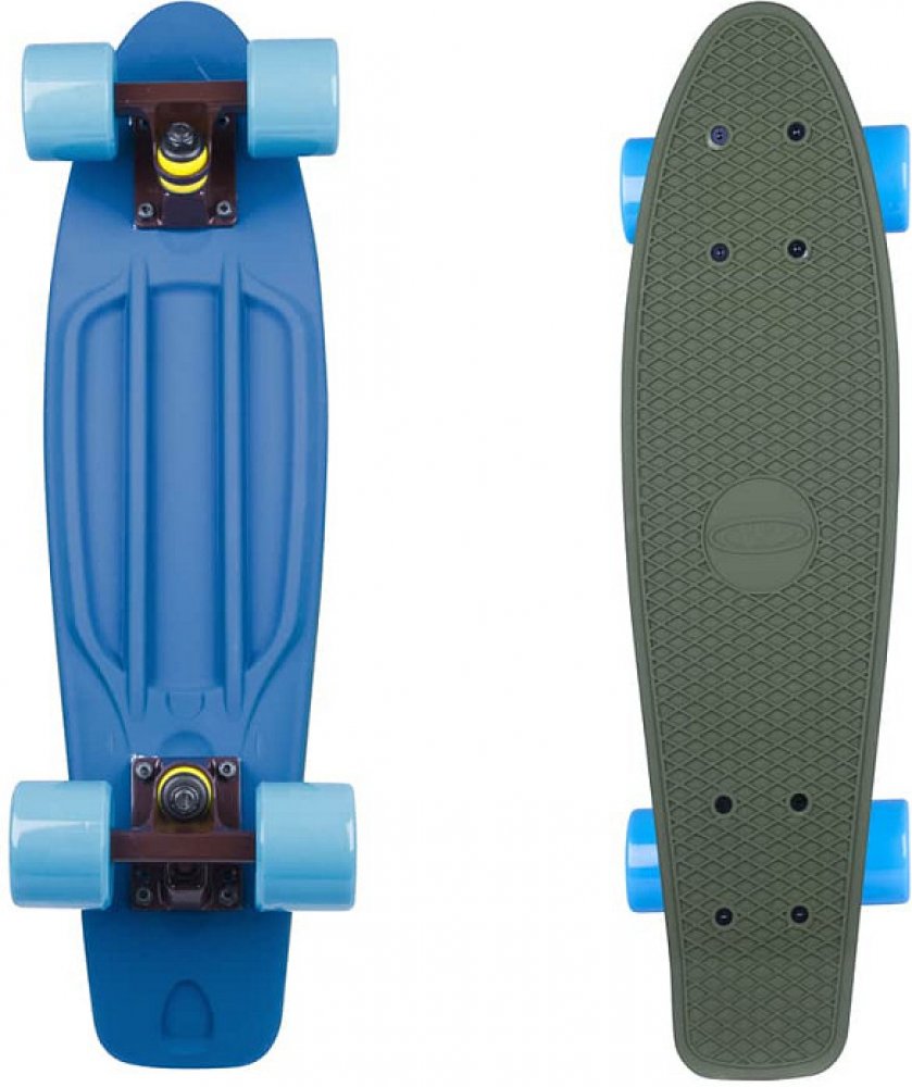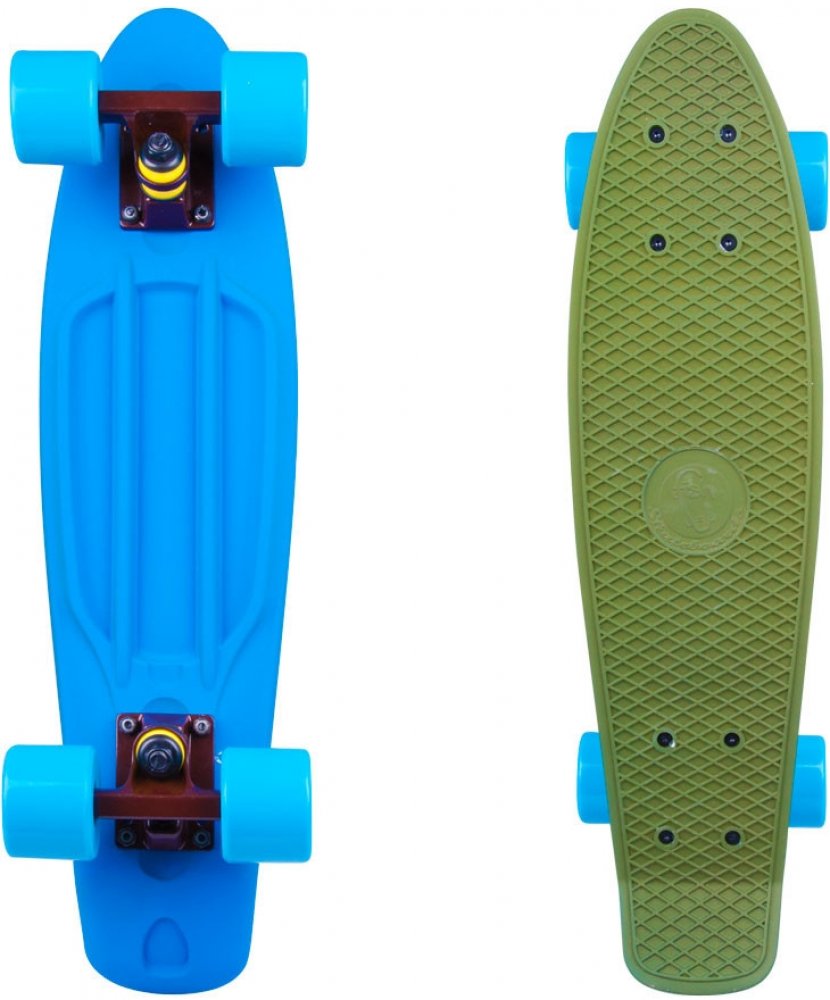 Tento penny board je s trochou nadsázky jako obrněný bojový letoun: prakticky nezničitelná deska, kaučukový nátěr odolný proti poškrábání a k tomu barevné zpracování v armádně-námořním stylu.
