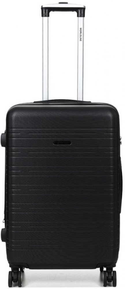 Střední cestovní kufr na kolečkách Worldline – lehký a prostorný skořepinový kufr o objemu 70 l s možností rozšíření. Kufr je vybaven 4 otočnými kolečky pro snadnou manipulaci, číselným zámkem, praktickým vnitřním uspořádáním s upínacími popruhy, přepážkou a kapsou.Střední cestovní kufr na kolečkách 74 l – Worldline