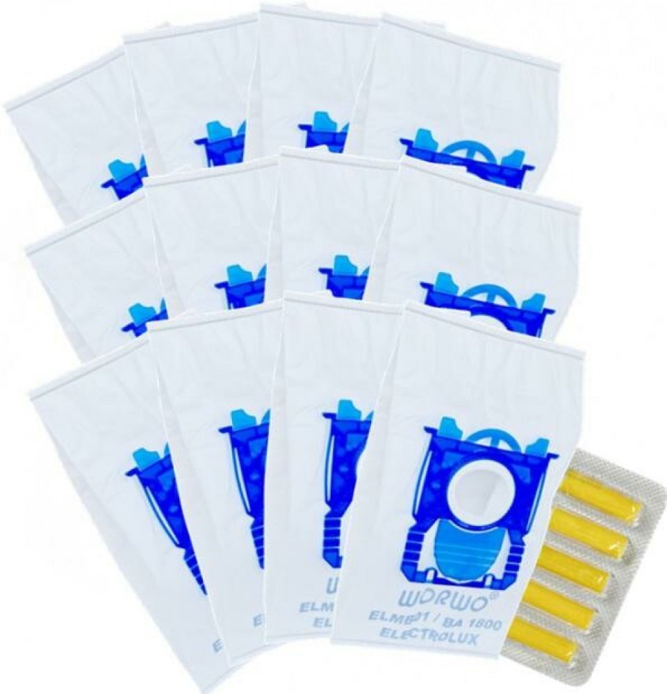 Sáčky do vysavače ELECTROLUX - UltraOne EUO93DB ELECTROLUX (typ s-bag) 12ks Náhradní sáčky Worwo ELMB01 (dříve ELMB01K) jsou určeny do vysavačů typu Electrolux S-BAG pro vysavače AEG-ELECTROLUX-PHILIPS AirMax, Bolido, Clario, Clario 2, Classic Silence, ErgoSpace, Excelio, Essensio, JetMaxx, Maximus, Oxygen, Oxy3system, UltraSilencer, UltraOne, Viva Control, Viva Quickstop, Philips Autoclean, Ergof...