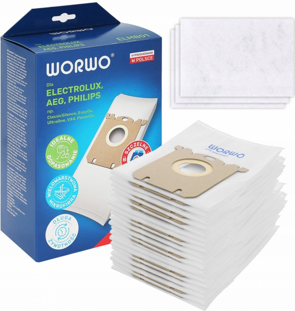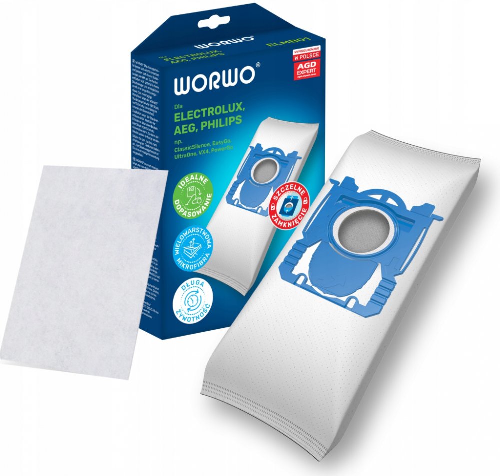 Sada HEPA filtr do vysavače Značení WORWO - ELMB01K a sáčky 1+4ksSada 1SBAG MAX Jolly sáčky 4ks a HEPA EP-H12 filtr 1ks pro vysavače AEG, ELECTROLUX S-BAG, Philips, Zanussi s HEPA filtry ELECTROLUX EFH12, ELECTROLUX EFH12N, ELECTROLUX EFH13, ELECTROLUX EFH13W, ELECTROLUX EF26, ELECTROLUX EFS1W, AEG AEF12, AEG AFS1W, PHILIPS FC 8031/00, PHILIPS FC 8031/01, PHILIPS FC 8038/01, MENALUX F1800H rozměro...