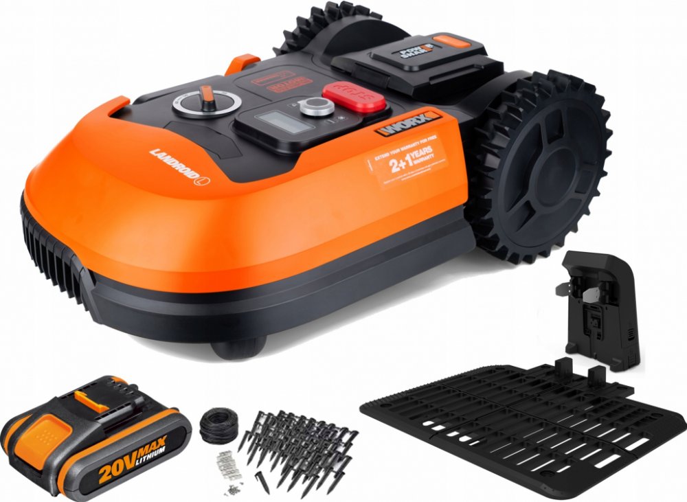 Důvody ke koupi: Model Landroid L800 je napájen jedním 20V akumulátorem. Jeho kapacita činí 2 Ah. Do aku platformy Worx PowerShare 20 V patří i všechny další 20 V akumulátory, které jste možná již dříve zakoupili s jinými přístroji značky Worx. Součástí dodávky robotické sekačky je navíc také nabíjecí stanice, 210 kolíků, 150m vymezovací drát, 9 nožů, 2 spojky a 8 upevňovacích hřebů. Vymezovací drát rozmístíte po zahradě a upevníte jej pomocí dodaných kolíků. Vaše sekačka na trávu Worx jezdí podle drátu, a tak poznává své okolí. Podporuje jak Wi-Fi, tak Bluetooth. Díky tomu můžete nového kamaráda snadno integrovat do své domácí sítě a řídit jej.