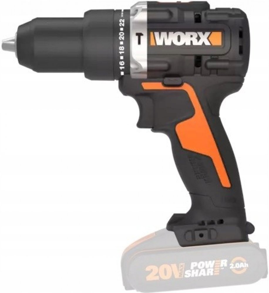 Aku příklepová vrtačka WORX WX352.9 60Nm kompaktní 20V, bez baterií a akumulátoru - PowershareAku vrtací šroubovák Worx WX352 s bezkartáčovým motorem o napětí 20 V.Funkce PowerShare „One Battery, Upgrade Power“ znamená, že stejnou 20V baterii lze použít ve více konfiguracích pro napájení 40V a 80V produktů.Hlavní výhodyBezkartáčová technologie zajišťuje až 50 % více výdrže baterie, 25 % více výkonu, 10 krát delší životnost motoruRežim úderu pro vrtání do zdiva Kompaktní a lehký designSnadno se ovládá a manipulujeDvě rychlosti: první rychlost pro větší utahovací moment, druhá rychlost pro vyšší rychlost 13mm sklíčidlo NoKey umožňuje rychlou výměnu vrtáku LED pracovní světlo pro práci v tmavém prostředí Plataforma Powershare. Baterie je snadno vyměnitelná a kompatibilní se všemi elektrickými nástroji a zahradními nástroji řady 20V od WorxSoučást dodávky1x oboustranný bit1x háček na opasek1x držák bituMax. utahovacá monent60 NmKapacita sklíčidla13 mmMax ⌀ vrtání dřevo/kov/zdivo40/13/13 mmUtahovací moment22+1+1