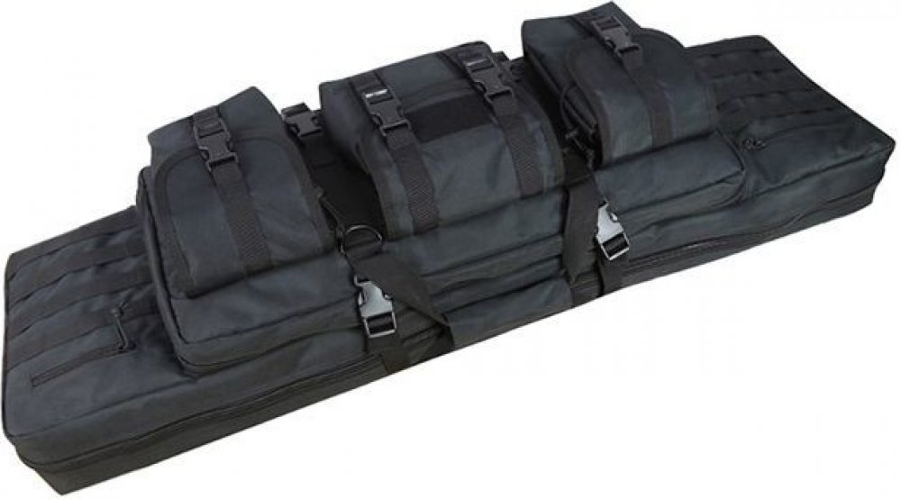 Odolná a praktická brašna, která pojme dvě primární zbraně na airsoft a spoustu dalšího vybavení. Zipy mají očka pro uzamknutí, popruhy jsou kvalitní a bytelné. Na přední straně se nachází tři kapsy s velkým úložným prostorem. Na největší kapse najdeme Velcro panel pro umístění nášivky.