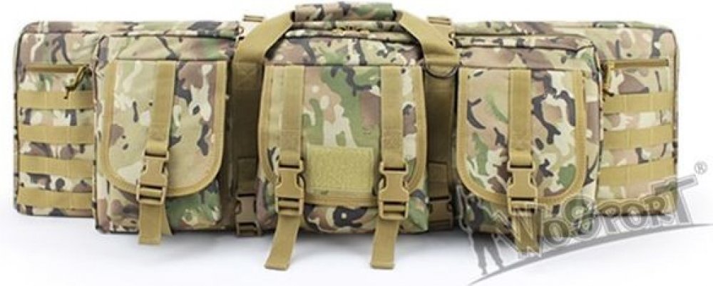 Odolná a praktická brašna, která pojme dvě primární zbraně na airsoft a spoustu dalšího vybavení. Zipy mají očka pro uzamknutí, popruhy jsou kvalitní a bytelné. Na přední straně se nachází tři kapsy s velkým úložným prostorem. Na největší kapse najdeme Velcro panel pro umístění nášivky.