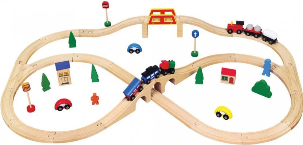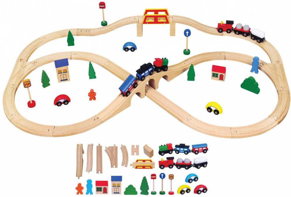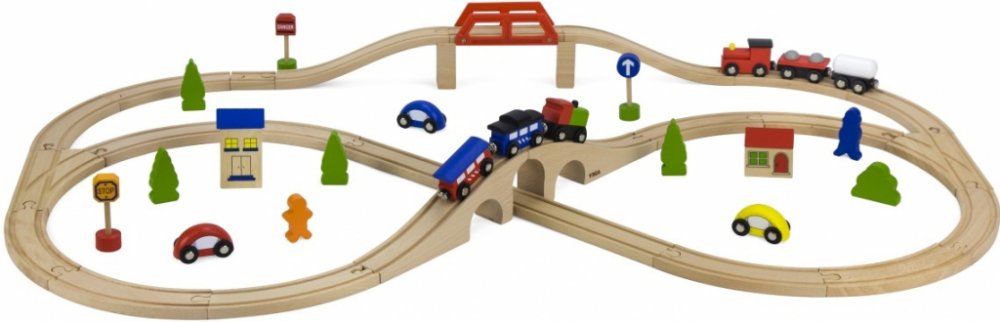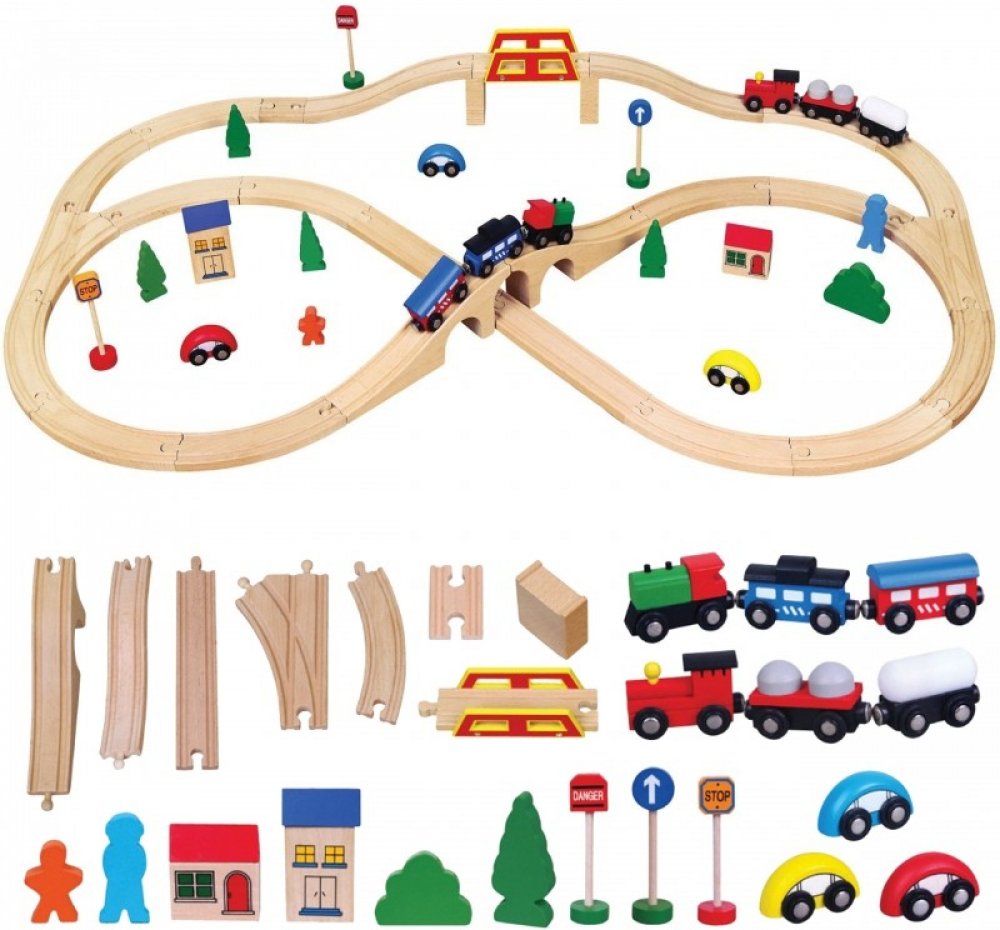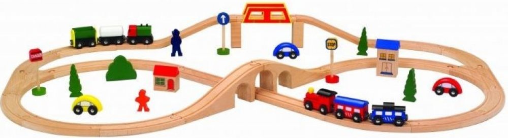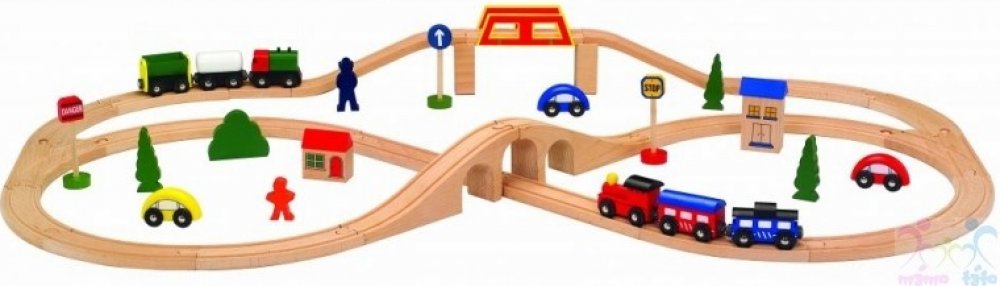 Jednotlivé dílky jsou kompatibilní i s vláčkodráhami jiných značek: Brio, IKEA, ELC, Little Steps, Eichhorn, Woodyland, Tesco, Carousel. Vhodné pro děti od 3 let.