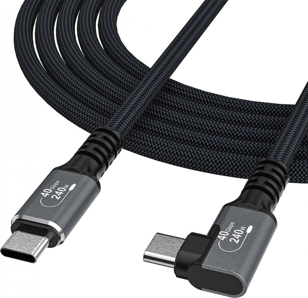 Wozinsky WPS3-UY41S USB-C Thunderbolt 4 240W 1m 4K úhlový kabel - černý Úhlový kabel Wozinsky WPS3-UY41S Thunderbolt 4 nabízí mimořádně rychlé a spolehlivé připojení pro moderní zařízení s USB-C. Podporuje rychlost přenosu dat až 40 Gb/s, nabíjení 240 W a přenos videa v rozlišení 8K@60Hz nebo duální 4K@60Hz. Díky čipu EJ903W a designu s certifikací Thunderbolt 4 zajišťuje nejvyšší stabilitu a bezp...