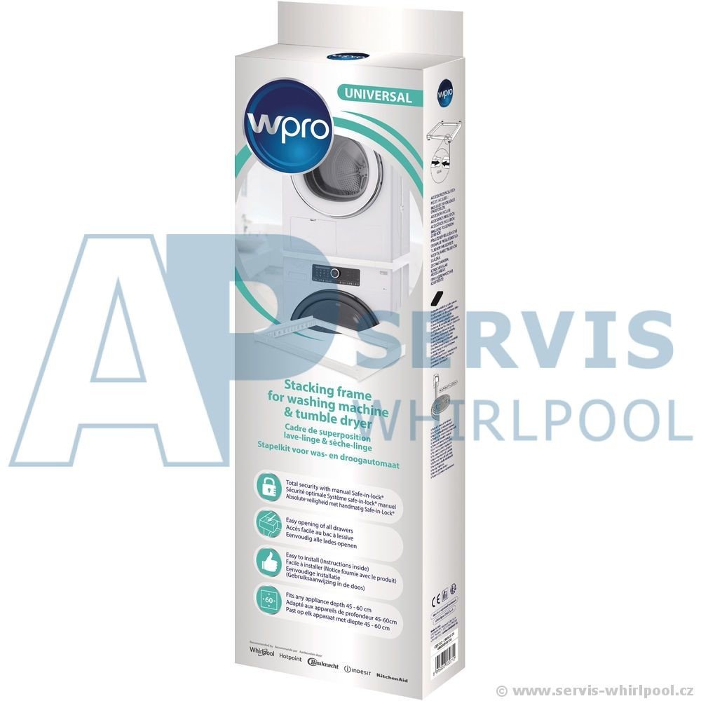 Vysoká kvalita provedení a trvanlivá konstrukce spojovacího prvku značky Wpro umožní stabilní provoz pračky a sušičky.