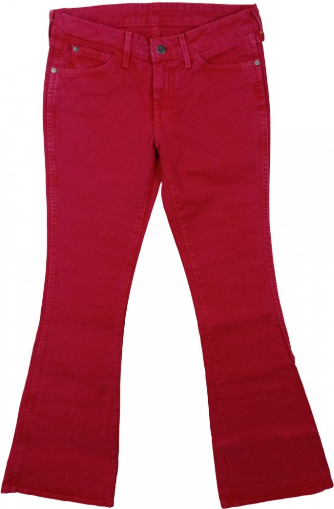 Dámské džíny wrangler vynikají výraznou červenou barvou a módním střihem flare. Přiléhavé na bocích a stehnech, od kolen se rozšiřují, což opticky prodlužuje nohy a dodává postavě atraktivní siluetu. Díky klasickému pasu se pohodlně nosí a snadno kombinují jak s volnočasovými, tak s elegantnějšími outfity.