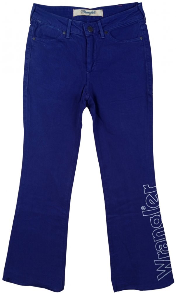 Vystupte z davu s těmito výraznými dámskými džíny wrangler joni v zářivě královsky modré barvě. Flare střih dodává retro nádech, zatímco moderní detaily z nich dělají jedinečný kousek. Na pravé nohavici je umístěno velké kontrastní logo wrangler, které podtrhuje ikonický styl značky.