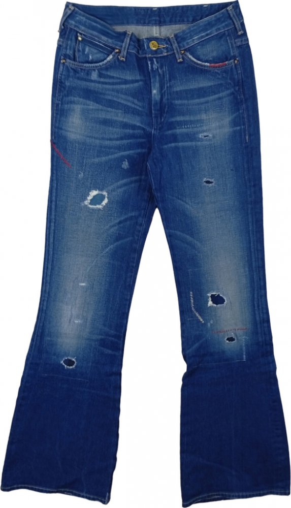 Střih flare se rozšiřuje od kolen dolů, čímž opticky prodlužuje nohy a dodává ženské postavě vyváženou siluetu. Vyšší pas zajišťuje pohodlné nošení a skvěle ladí k ležérnímu i streetwear stylu.