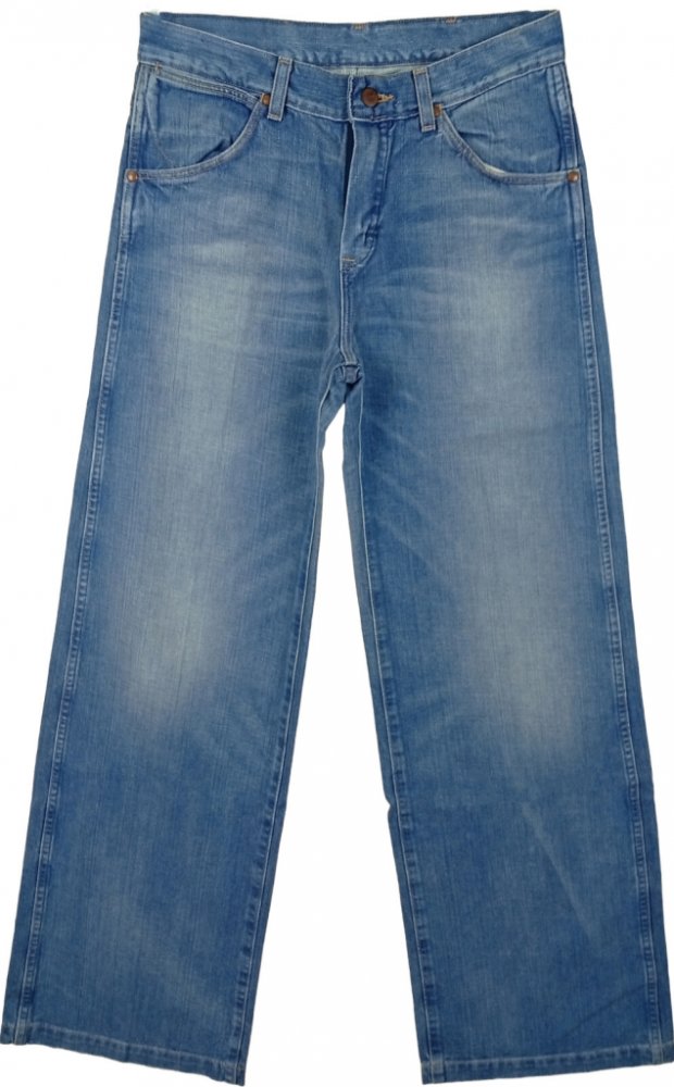 Na přední straně mají klasické zapínání na zip a knoflík, dvě kapsy a malou kapsičku na mince. Zadní kapsy zdobí typické prošívání ve tvaru „w“ a kožený štítek wrangler, který potvrzuje jejich autentický charakter.
