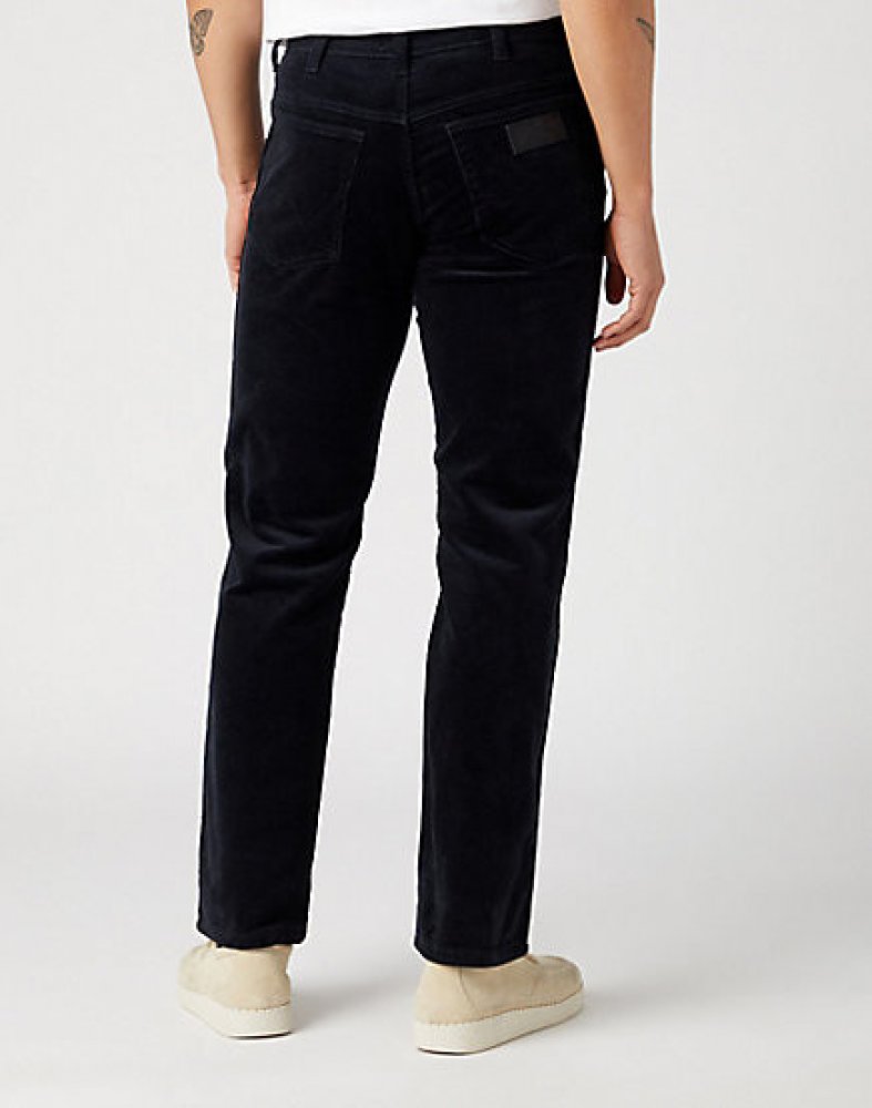 Manšestrové kalhoty Greensboro Black pánské černé. Černé manžestrové kalhoty se zapínáním na zip jsou rovného střihu Regular fit se zužující se nohavicí a střední výškou sedu. Značkové kalhoty mají dvě klasické přední kapsy s jednou menší kapsičkou, která je součástí pravé přední kapsy a dvě kapsy zadní. Zadní kapsy jsou prošity ve tvaru písmene W. Na pravé zadní kapse najdeme koženou nášivku se značkou Wrangler. Manšestrové kalhoty jsou z kvalitního materiálu a jsou velmi příjemné a pohodlné na těle. Materiál: 98% bavlna, 2% elastan. Praní: 30°. Žehlení: nízká teplota.