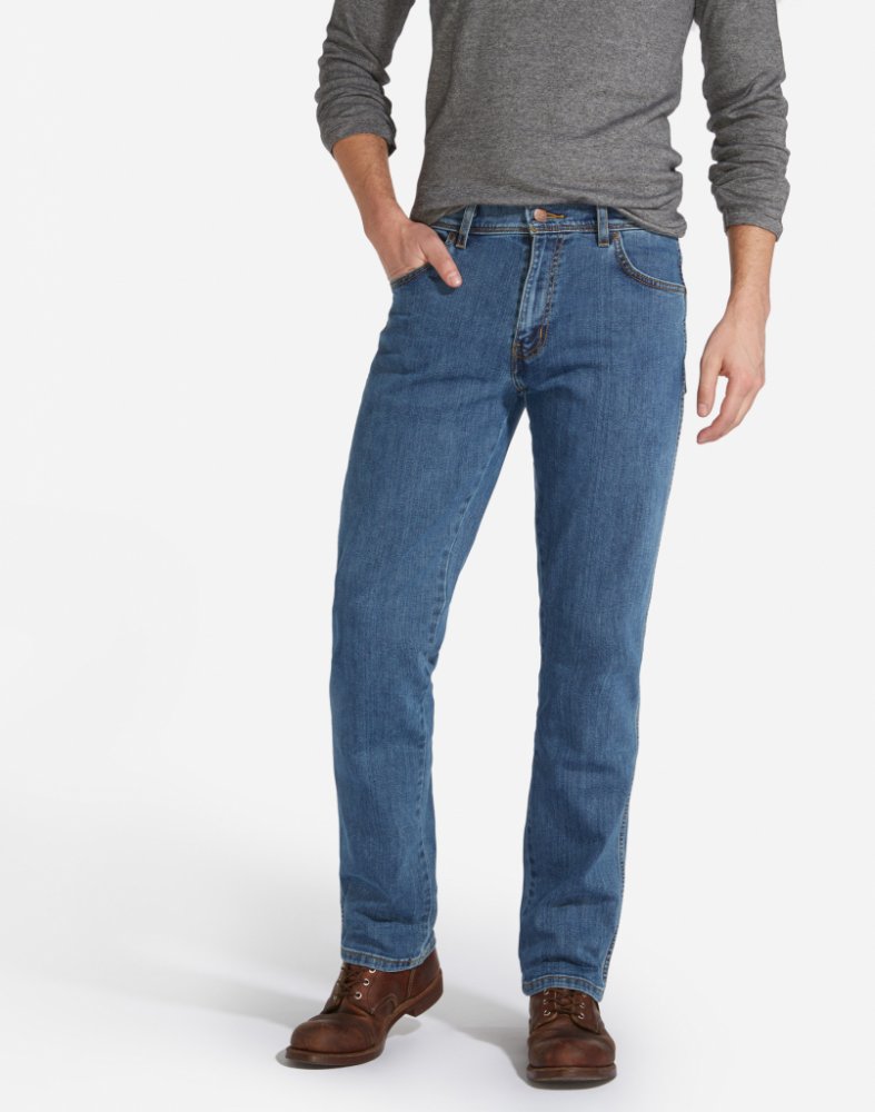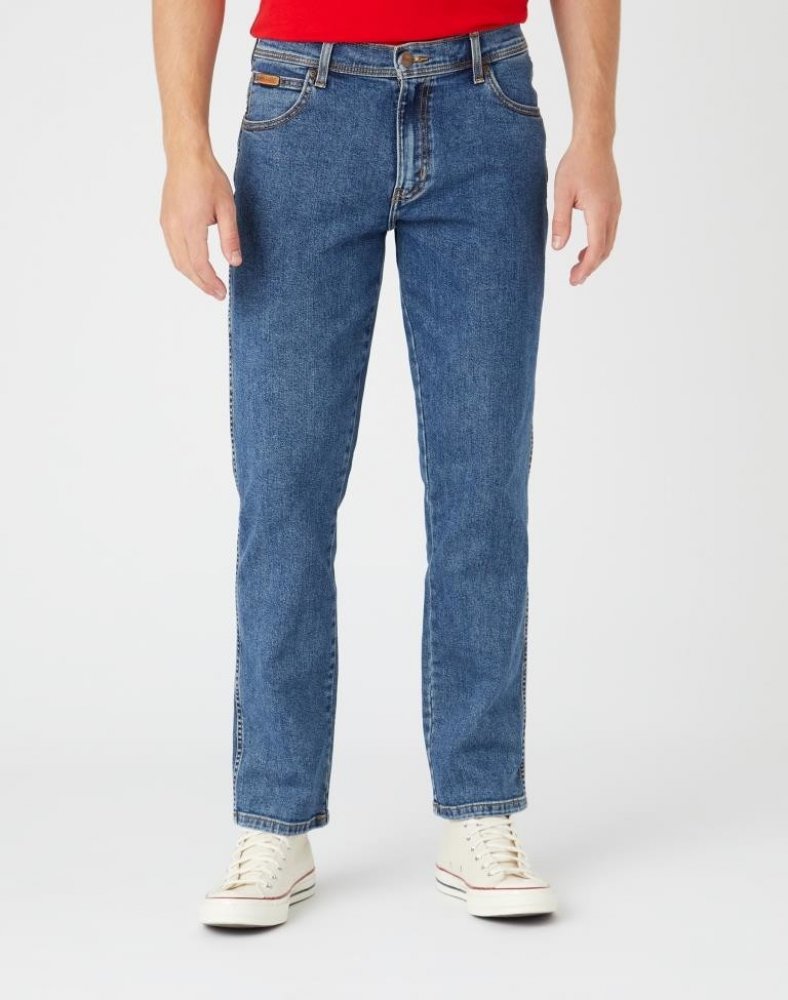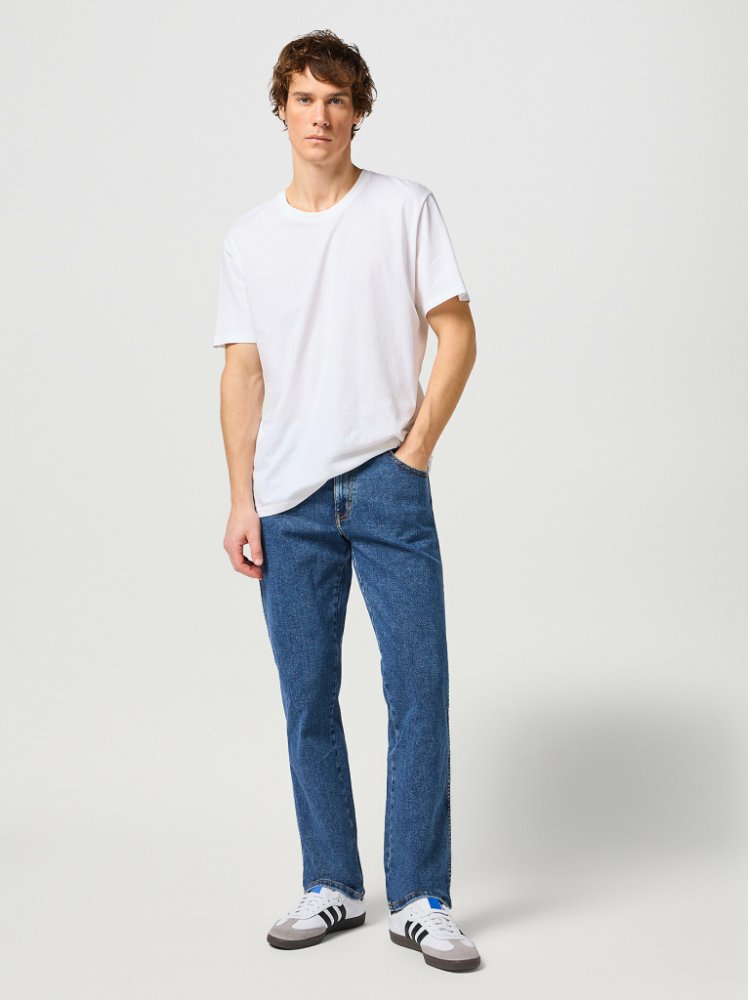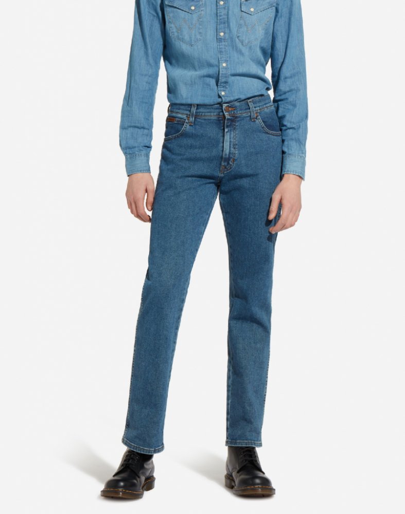 Zapínání na zip, mosazné knoflíky a ikonické logo Wrangler na zadní kapse, to vše prošité autentickou světle hnědou nití. Kapsy zdobí typické „W“, které připomene legendu amerického západu. Sebevědomý styl, který ví, že kvalita a tradice jsou nad módními výstřelky.