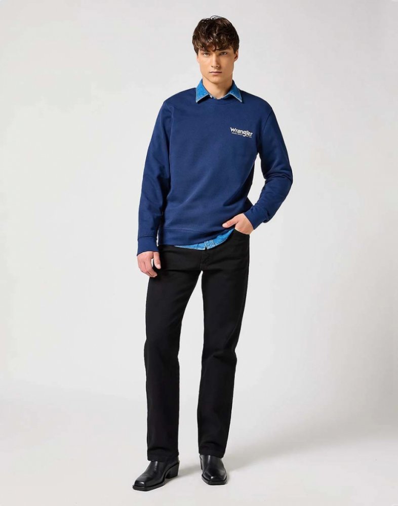 Klasické džíny se středně vysokým sedem a rovnými nohavicemi určené pro muže, kteří preferují tradiční materiál bez streče. Kalhoty jsou vyrobeny ze silnějšího černého denimu o vyšší gramáži. Jsou prošity lesklou černou nití a mají mosazné nýty a knoflík. Na zadních kapsách jeans je typické originální „W“ vyšívání, na pravé zadní kapse také kožená nášivka s logem Wrangler.