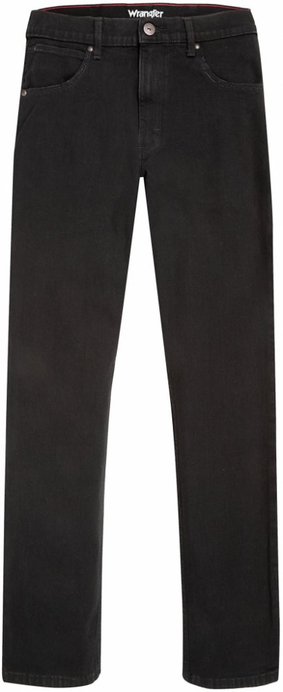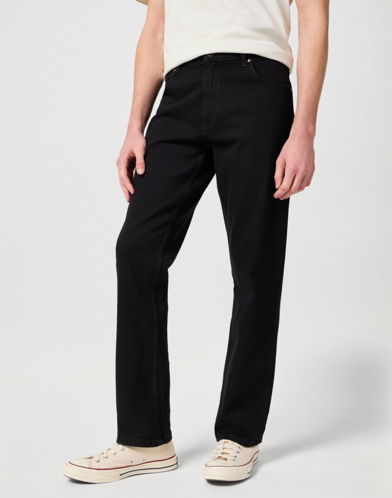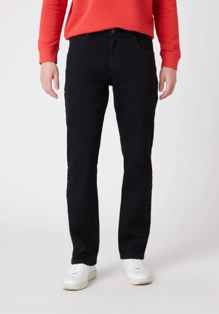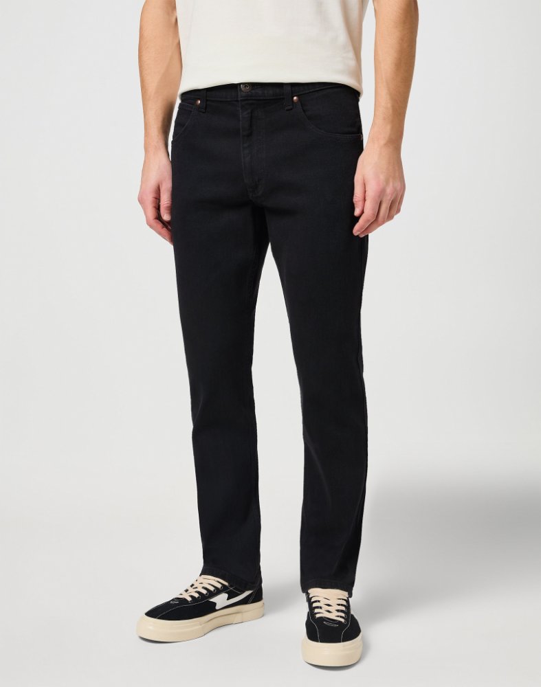 Černé nešoupané džíny s příměsí 2 % elastanu. Na přední straně jsou na okrajích kapes umístěny ozdobné nýty. Zapínání na zip a kovový knoflík s logem WRANGLER. Zadní kapsy mají typické dvojité prošití ve tvaru W. Nad pravou zadní kapsou v oblasti provlečení opasku je kožený štítek s logem WRANGLER. Pokud hledáte klasiku ve středně modrém provedení, máte vybráno. Džíny se hodí jak k tričku, tak ke ...
