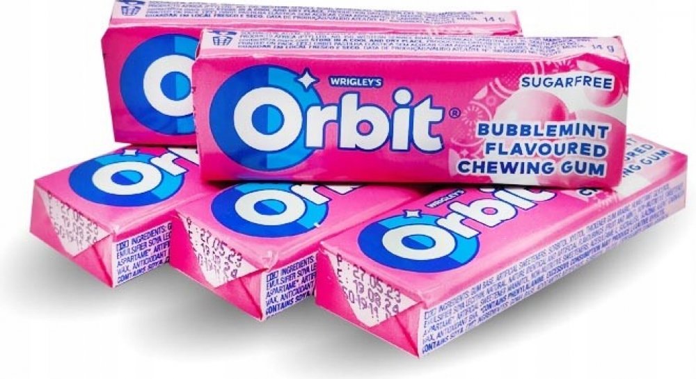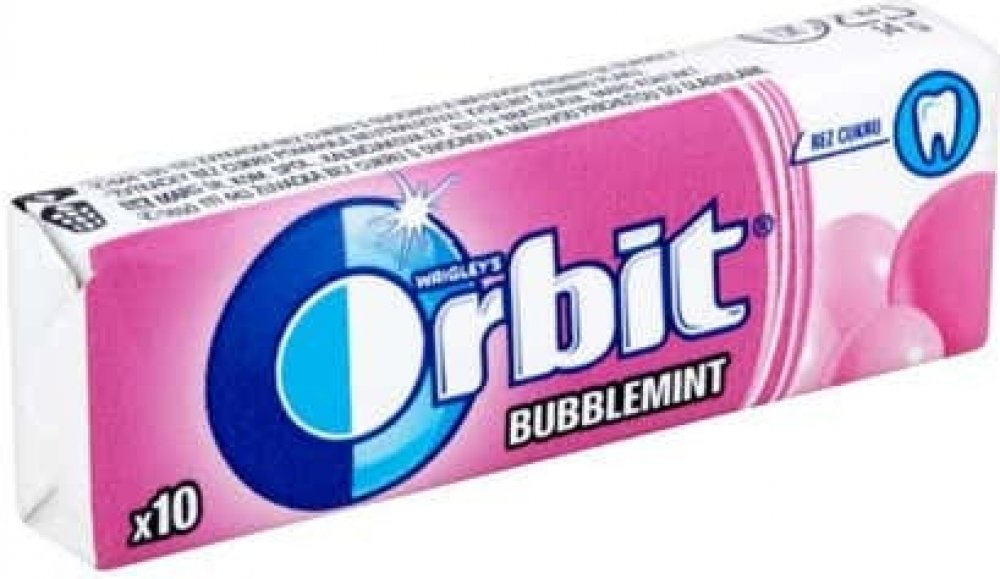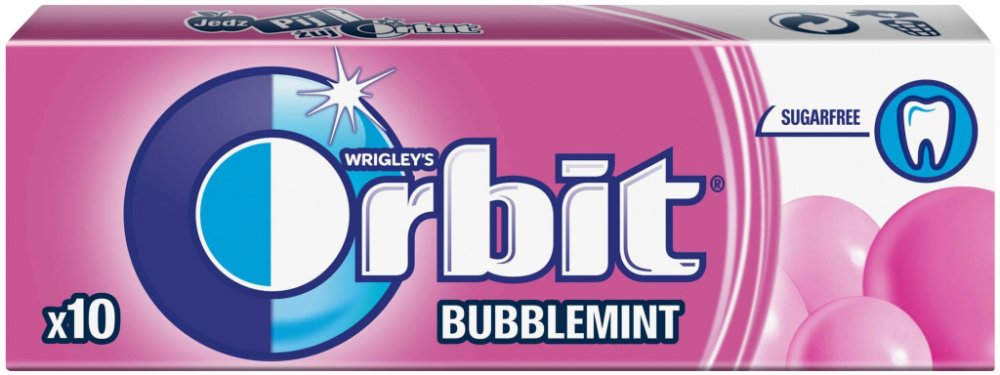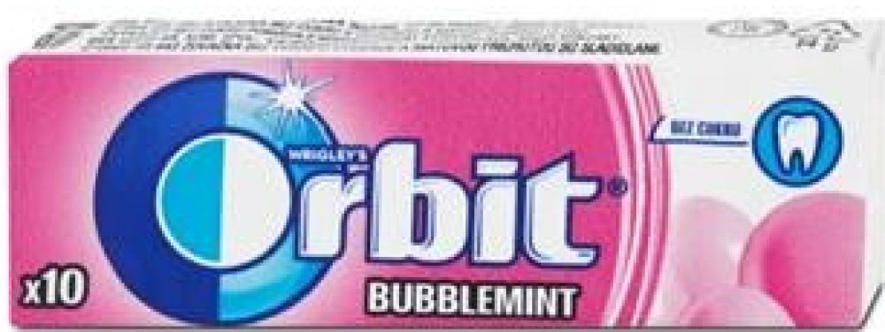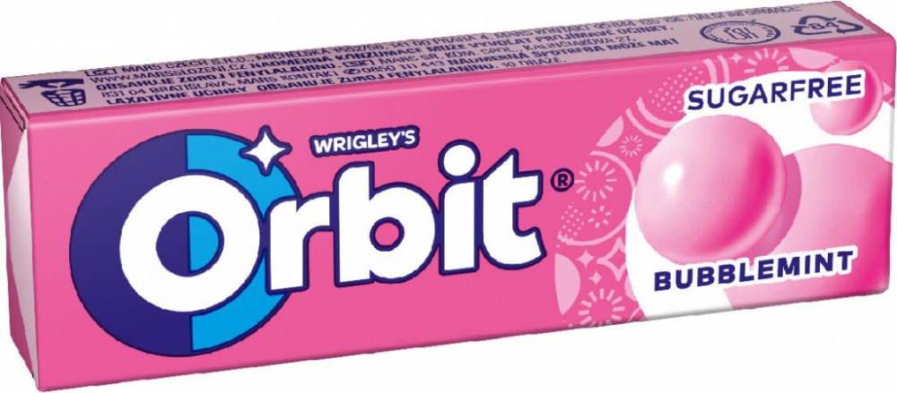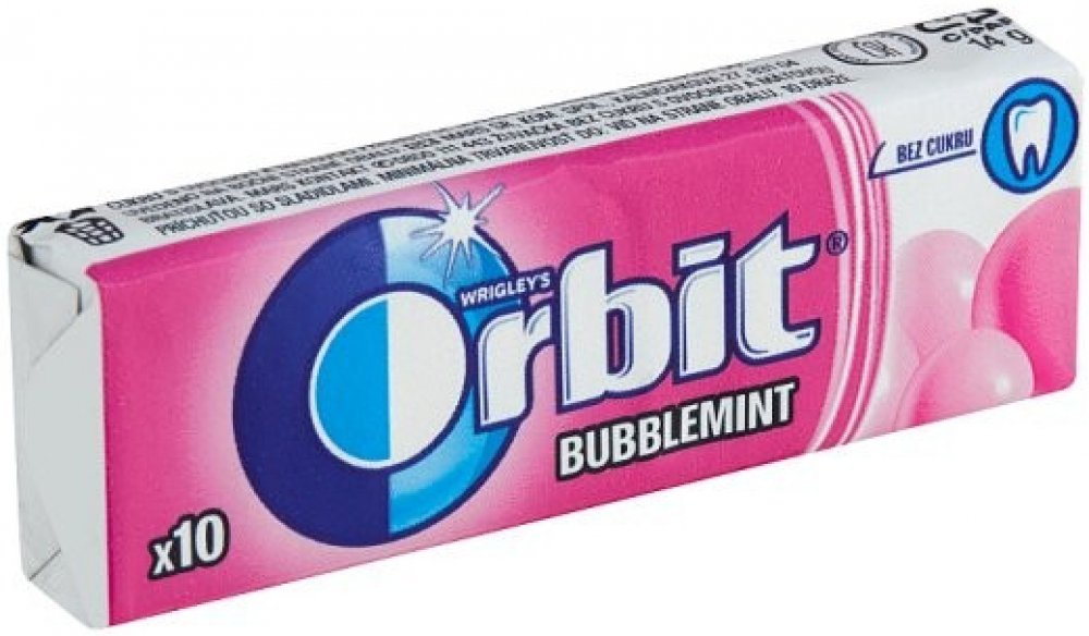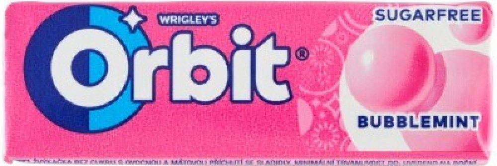 Orbit Bubblemint dražé ŽVÝKAČKA BEZ cukrU S OVOCNOU A MÁTOVOU PŘÍCHUTÍ SE SLADIDLY.