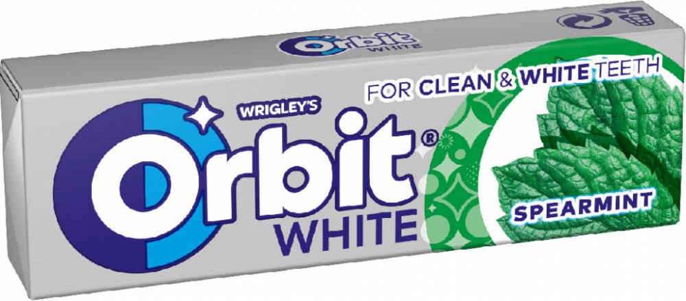 (Dle 12týdenní klinické studie bylo dokázáno, že žvýkání žvýkačky Orbit White 5x denně po dobu 12 minut napomáhá redukci zabarvení zubů)