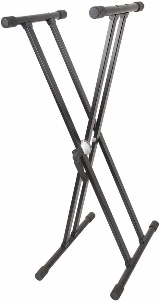 Ocelový klávesový stojan s dvojitými nohami ve tvaru písmene X, vhodný pro všechny běžné typy keyboardů. Patentovaný rychloupínací systém CROCODILE pro okamžitou změnu polohy, pogumované kontaktní plochy. Stojan je výškově nastavitelný v rozsahu 170-980 mm, maximální zátěž 50 kg. Černá barva. Hmotnost: 4,75kg, Rozměr ve složeném stavu: 51 x 10 x 102 cm