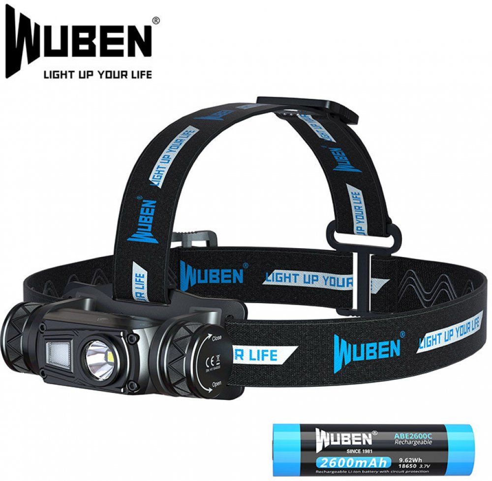 LED nabíjecí čelovka Wuben H1 vhodná pro venkovní aktivity, stanování, domácí práce i sportování, ale využijí ji i záchranáři. Čelovka je z černého plastu, s hlavovým elastickým popruhem je pohodlná a snadno se nastavuje.