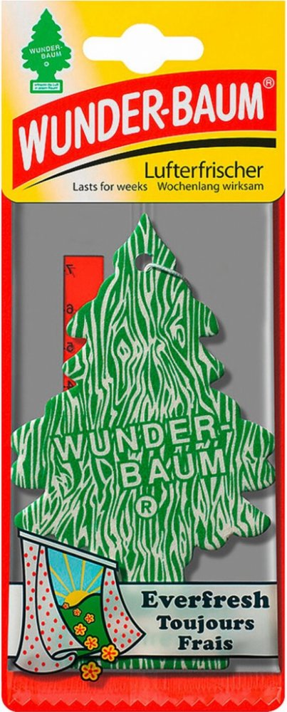 Osvěžovač vzduchu WunderBaum závěsný stromeček provoní interiér vozidla, bytu či kanceláře. Osvěžovač vzduchu WunderBaum závěsný stromeček provoní interiér vozidla, bytu či kanceláře. Skvělá a trvale ověřená kvalita voňavých stromečků WUNDER-BAUM. Osvěžovače vzduchu Wunderbaum, známé a nepřehlédnutelné svým tvarem stromečku, nabízí široké portfólio vůní pro auto, domov nebo kancelář. Vlastnosti stromeček osvěžovač WUNDER-BAUM: Papírový vonící stromeček se speciální vůní Originální osvěžovač pro Váš vůz i domácnost Pro delší životnost doporučujeme vysunout z obalu cca 1 cm/1 x týdně Stromeček lze volně zavěsit Osvěžovač umístěte a skladujte mimo dosah dět Bezpečnostní upozornění GHS07 - dráždivé látky Signální slovo: Varování Obsah nebezpečných látek Benzyl salicylate, alpha-iso-Methylionone, 2-(4-terc-butylbenzyl)propanal, Alpha-n- hexylcinnamicaldehyde, omega-Pentadecalactone, methyl-okt-2-ynoát H317 Může vyvolat alergickou kožní reakci. H412 Škodlivý pro vodní organismy, s dlouhodobými účinky. P101 Je-li nutná lékařská pomoc, mějte po ruce obal nebo štítek výrobku. P102 Uchovávejte mimo dosah dětí. P302+P352 PŘI STYKU S KŮŽÍ: Omyjte velkým množstvím vody a mýdla