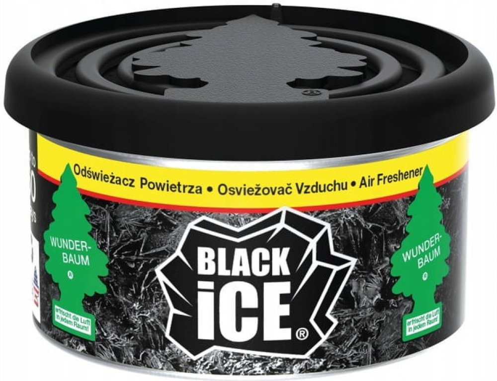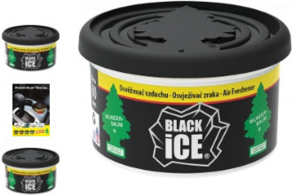WUNDER-BAUM Black Ice je osvěžovač vzduchu v originální plechovce, která je vyrobena z recyklovaných vláken. Dlouhotrvající příjemná vůně provoní interiér vozu i domácnosti. Je dlouhotrvající s nastavitelným víčkem.