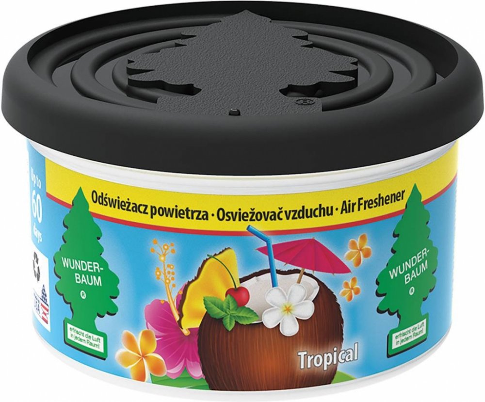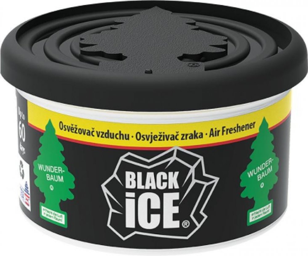 WUNDER-BAUM Black Ice je osvěžovač vzduchu v originální plechovce, která je vyrobena z recyklovaných vláken. Dlouhotrvající příjemná vůně provoní interiér vozu i domácnosti. Je dlouhotrvající s nastavitelným víčkem.