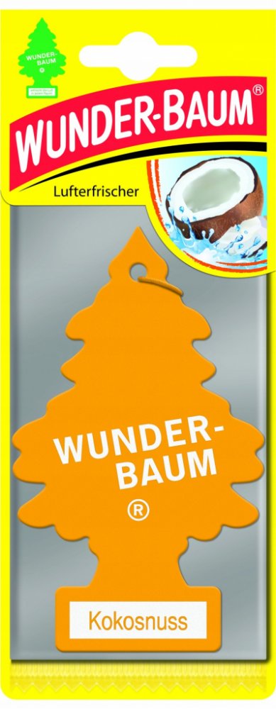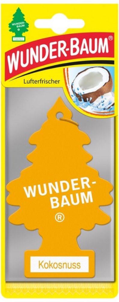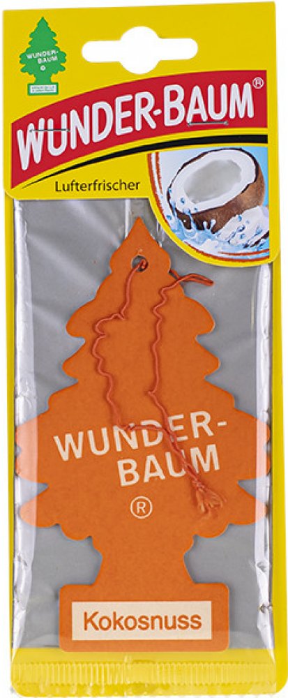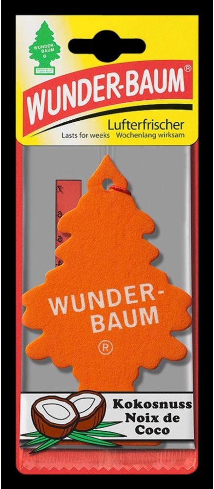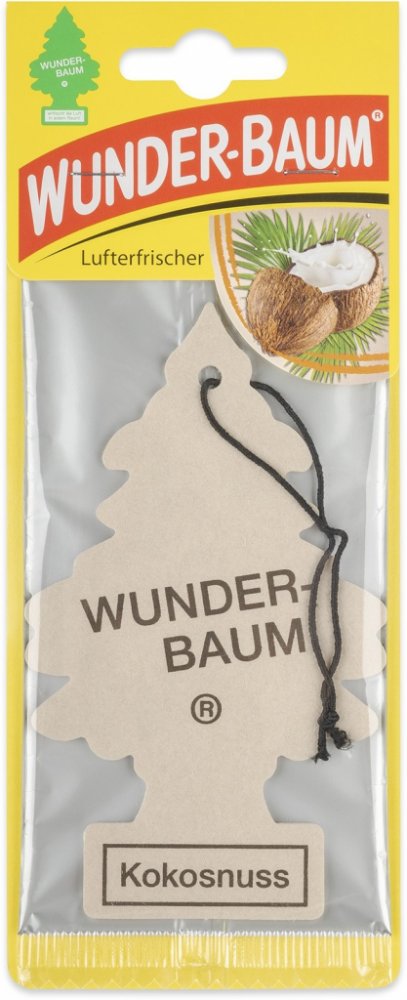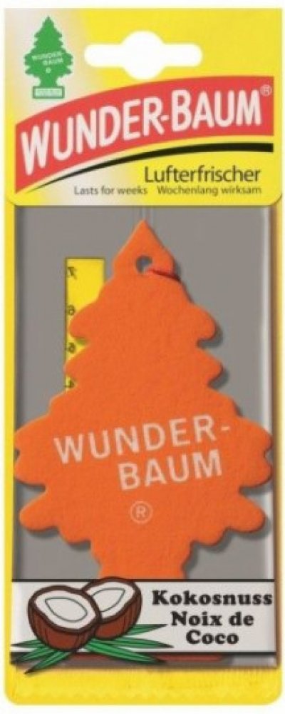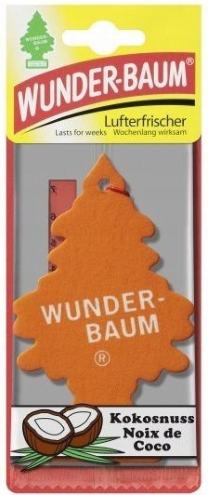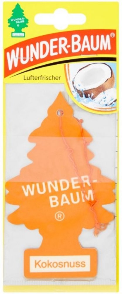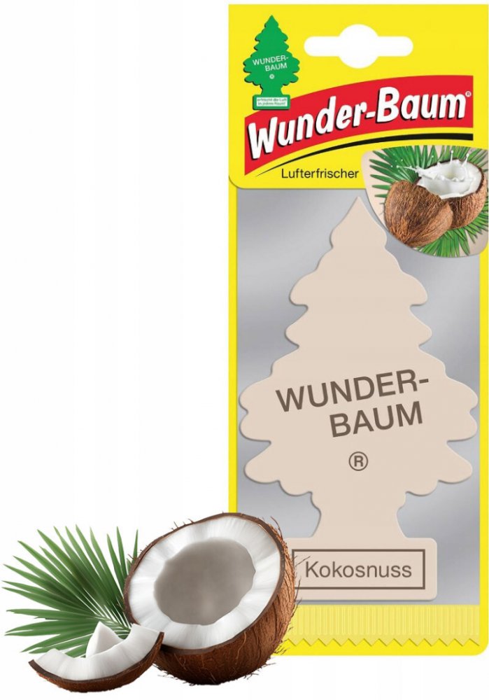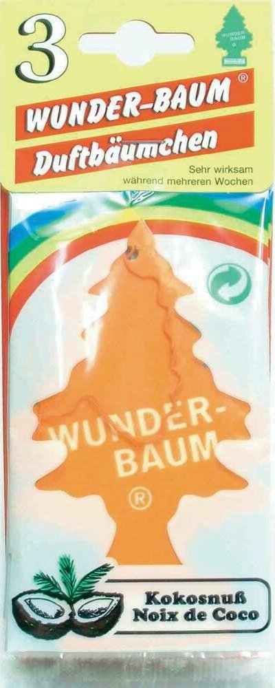 Stromeček WUNDER-BAUM s vůní kokosu je osvěžovač vzduchu do vašeho automobilu a domácnosti. Před použitím prostředku si vždy přečtěte označení a informace. Stromeček WUNDER-BAUM s vůní kokosu je osvěžovač vzduchu do vašeho automobilu a domácnosti. Udržuje svěží vzduch zhruba 7 týdnů a neutralizuje rušivé pachy (udává výrobce). Návod na použití: Osvěžovač vysuňte ze sáčku týdně asi o 1 cm. Zavěste volně tak, aby osvěžovač nepřišel do styku s ostatními plochami. Nepokládejte na plastickou hmotu, koberec, vinyl, malované a lakované plochy. Tento produkt je z chráněné dílny a může být poskytnuto náhradní plnění. Potřebujete poradit? Neváhejte nás kontaktovat na 724 995 979 nebo 495 454 030 a naši zkušení odborníci vám rádi poradí.